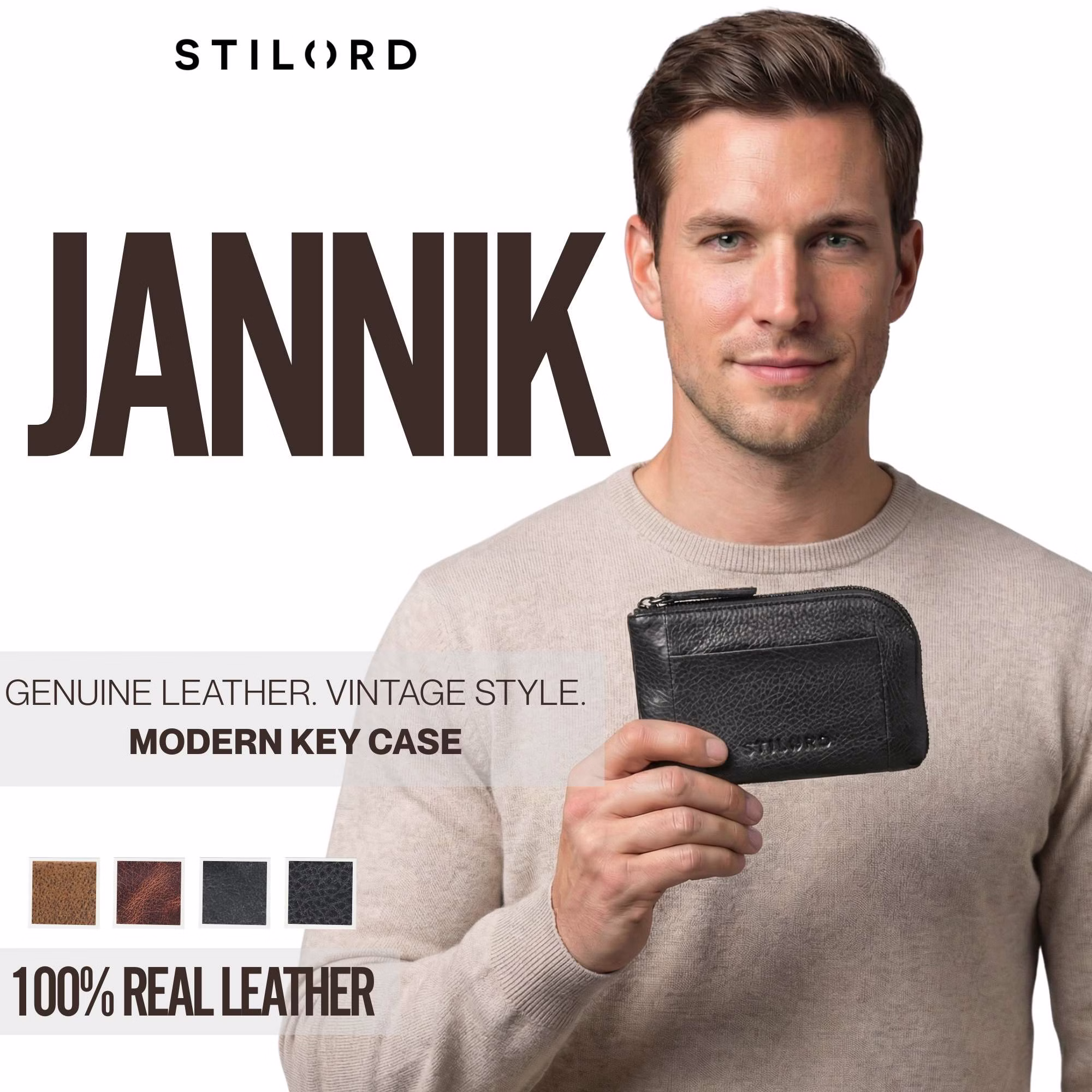 - SZCZEGÓŁY: Materiał: skóra naturalna | Marka: STILORD | Model: "Jannik" | Wymiary (DxSxW): ok. 13 x 1 x 8 cm | Waga: 45 g | Design unisex
