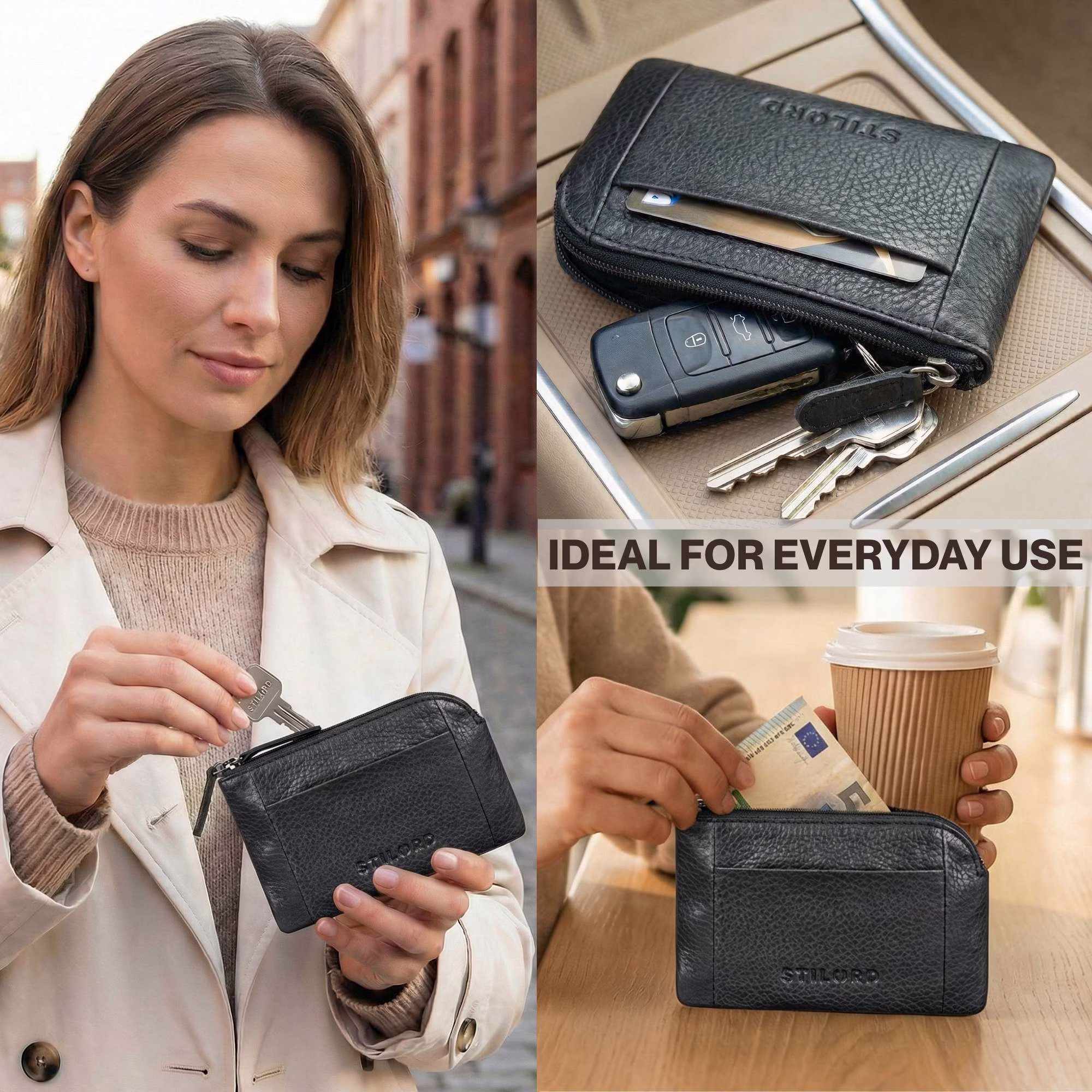 STILORD "Jannik" skórzane etui na klucze z kieszenią na monety – Twoje zalety: