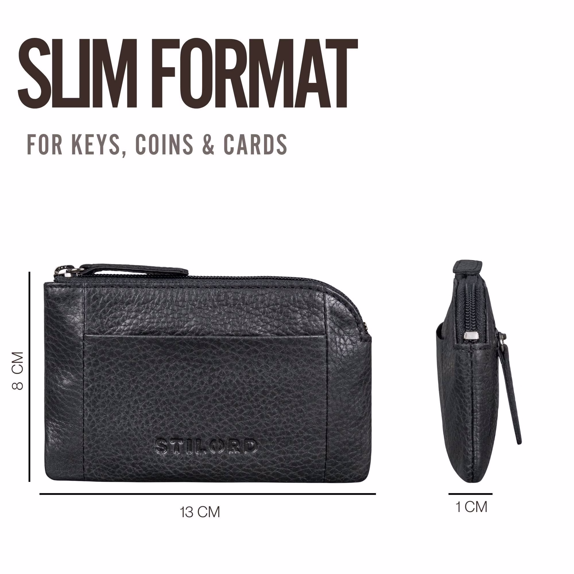 - SZCZEGÓŁY: Wymiary (DxSxW): ok. 13 x 1 x 8 cm | Materiał: skóra naturalna | Marka: STILORD | Model: "Jannik" | Waga: 45 g | Odpowiednie dla kobiet i mężczyzn