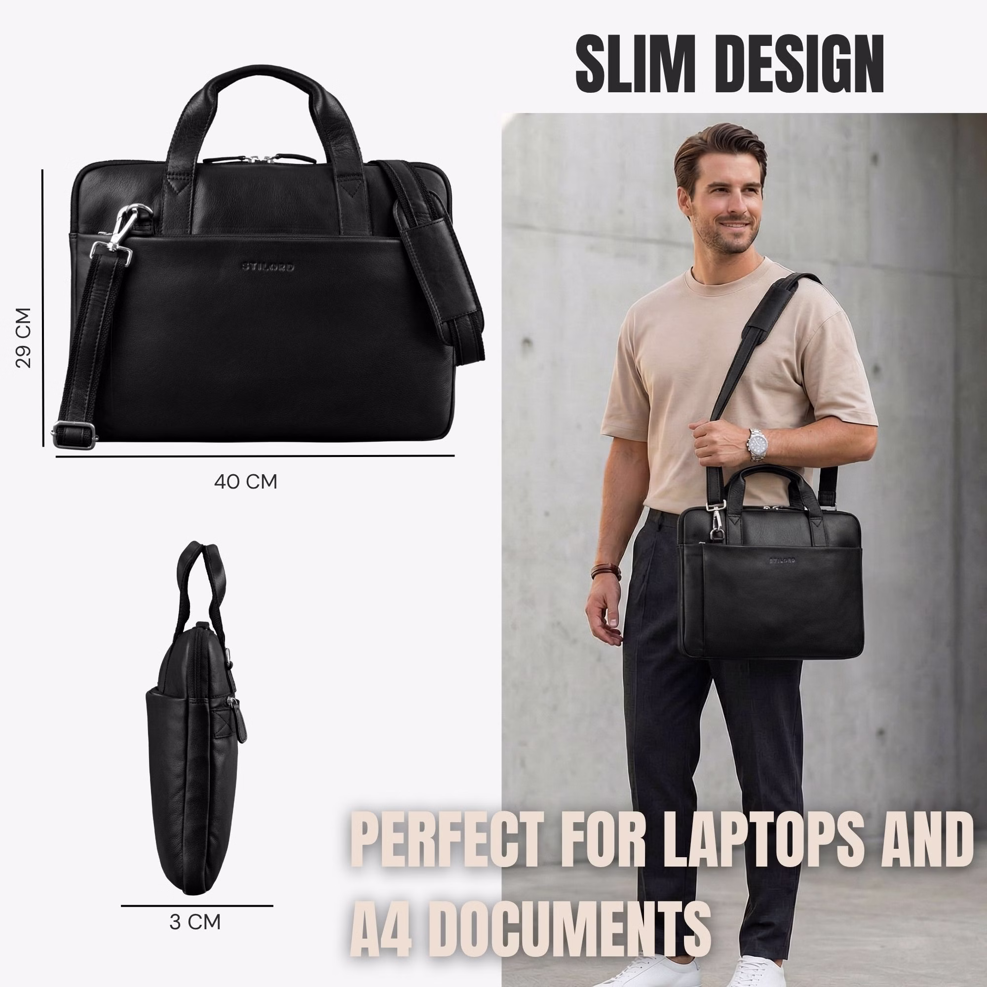 STILORD Cornelius Smukła Skórzana Torba na Laptop Męska 15–16 Cali z Paskiem na Ramię