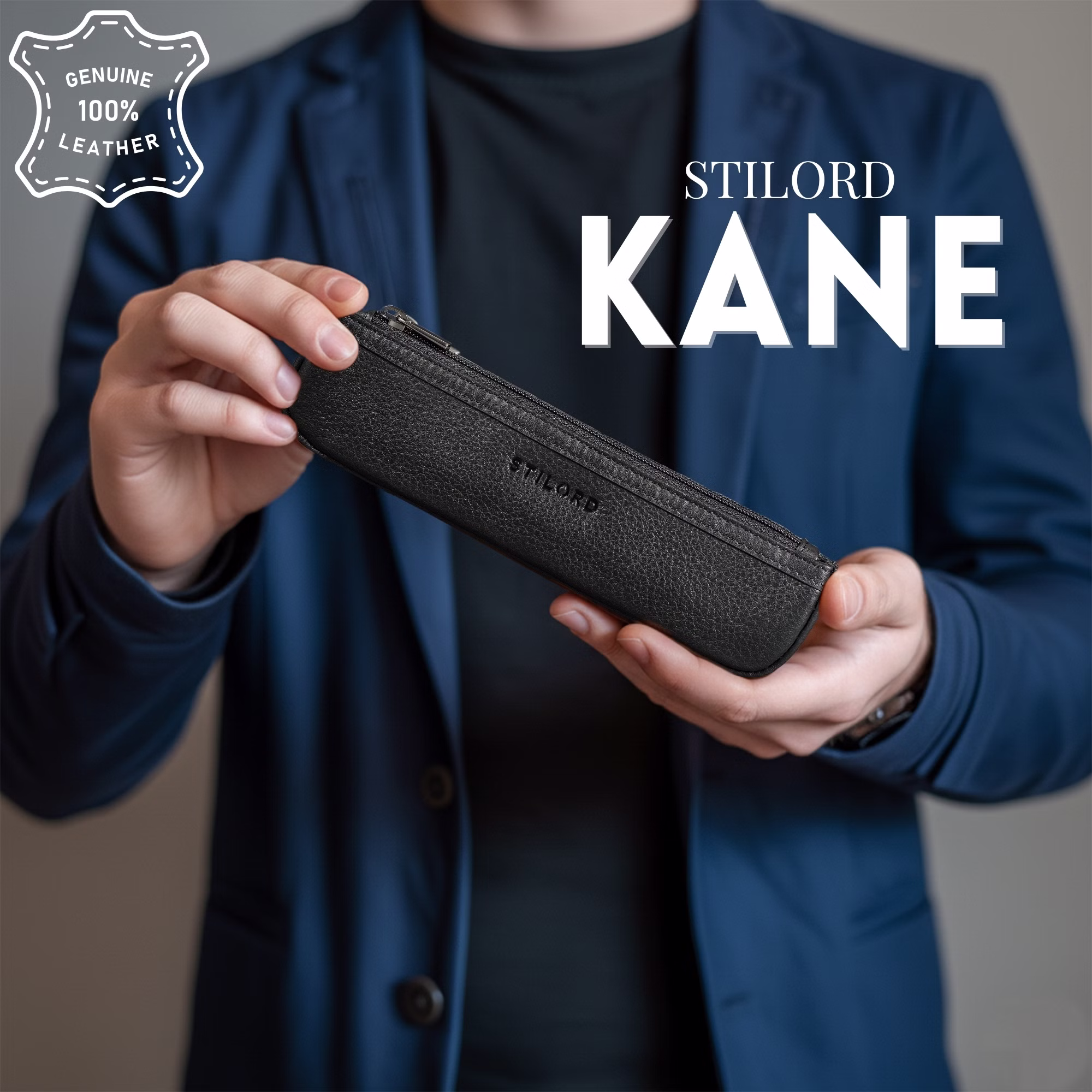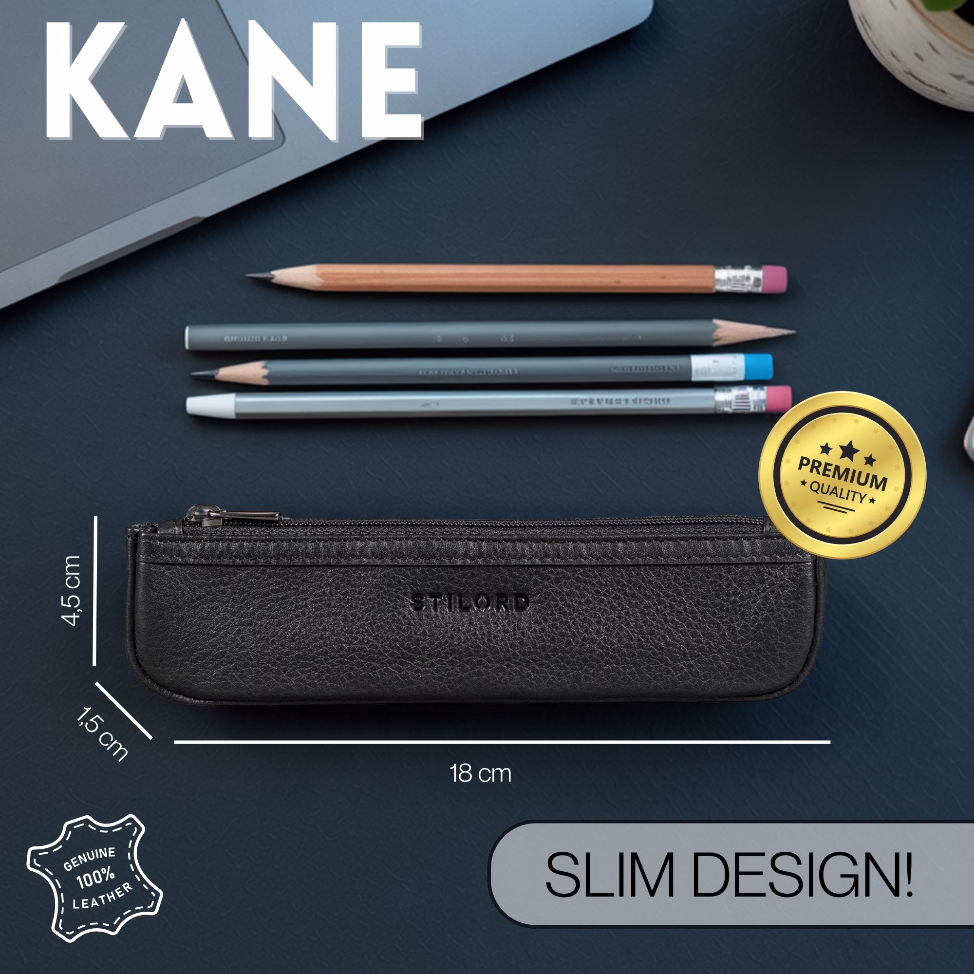 - SZCZEGÓŁY: Wymiary: 18 x 1,5 x 4,5 cm | Waga: 30 g | Materiał: naturalna prawdziwa skóra | Model: "Kane" | Marka: STILORD | Kompatybilność: długopisy, pióra, ołówki | Cechy: smukły design, wysokiej jakości zamek błyskawiczny, solidna skóra