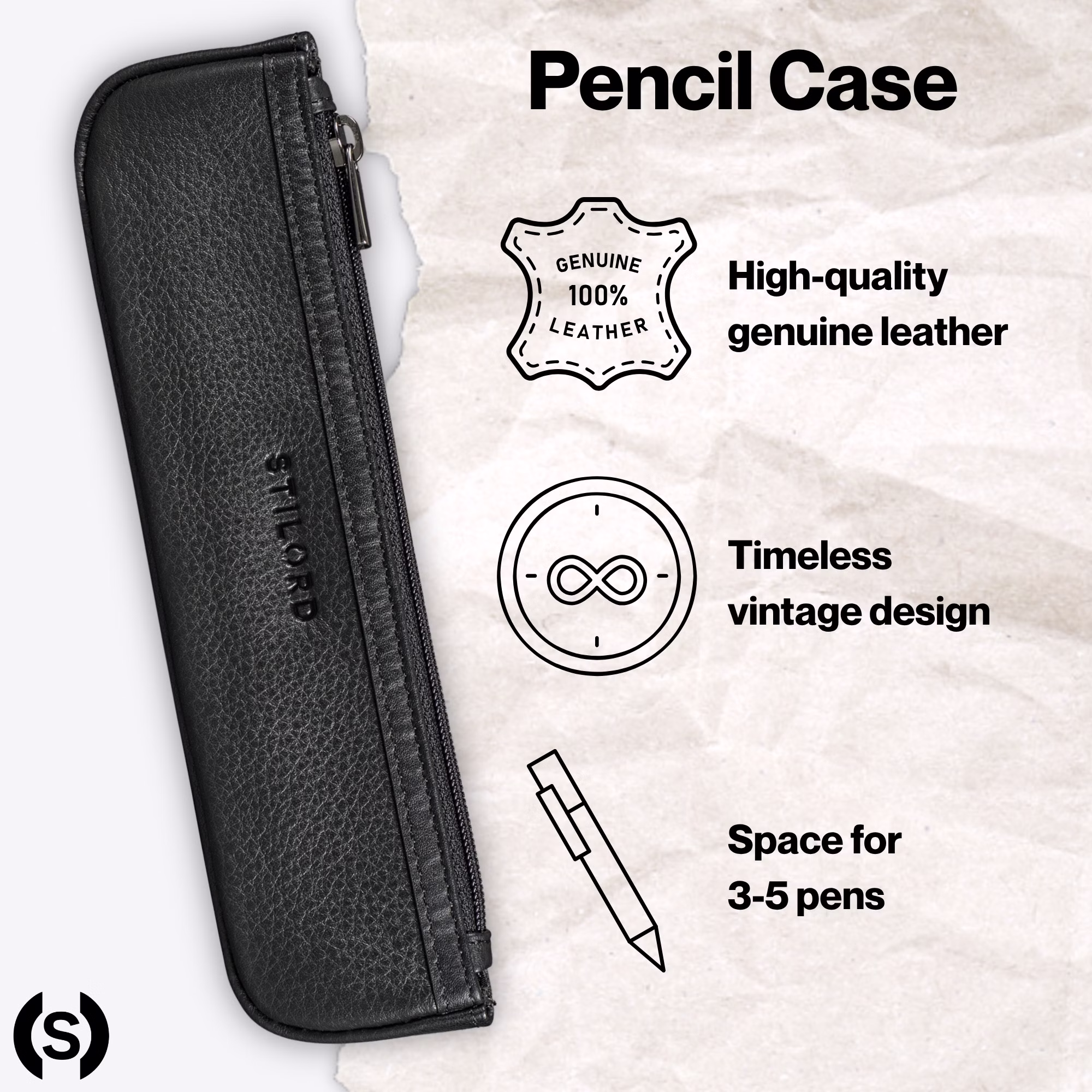 - UNIWERSALNY: Idealny jako mały piórnik do biura, szkoły, na uczelnię lub w podróży. Skórzany piórnik STILORD bez problemu mieści się w plecaku, torebce czy szufladzie biurka – praktyczny dodatek szkolny na długopisy, pióra lub małe akcesoria.
