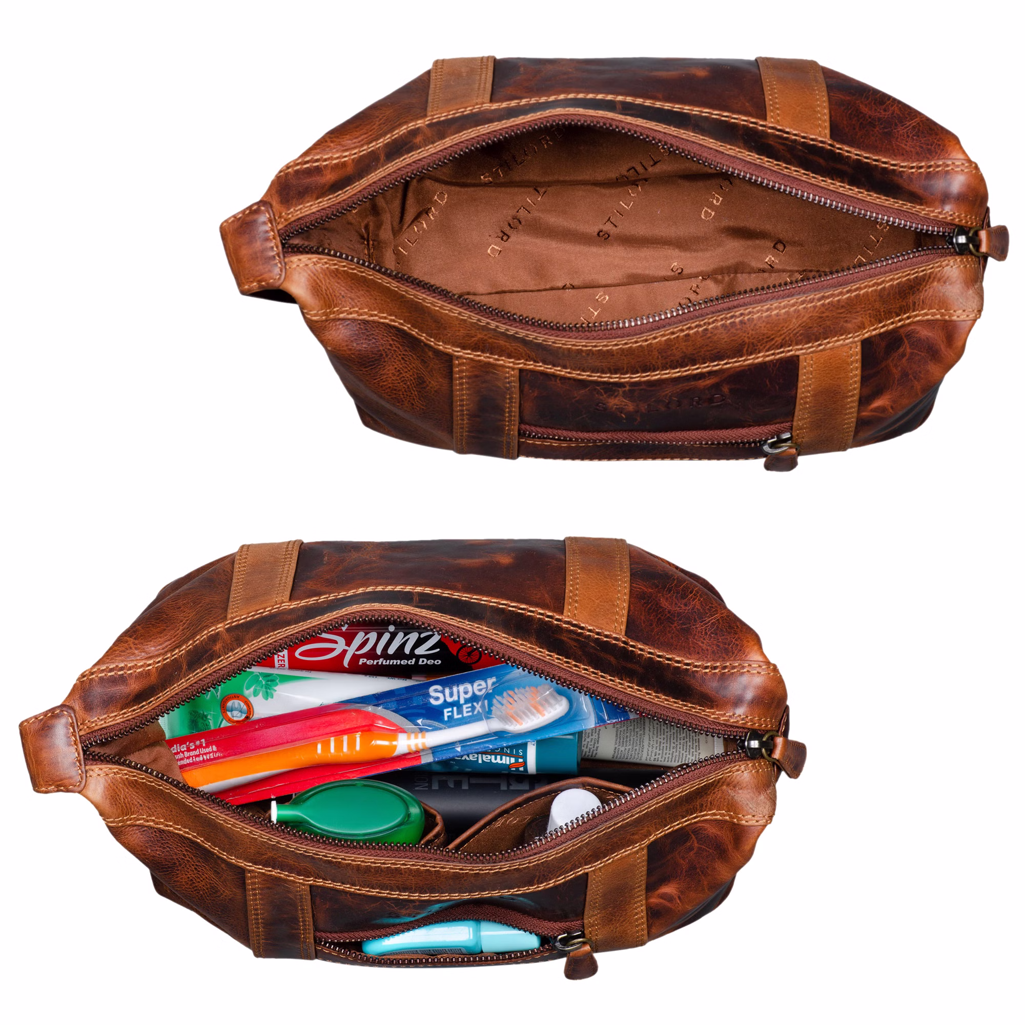 - STILORD "Bruno" skórzana torba toaletowa vintage dla mężczyzn kobiety | stylowy skórzany dodatek od producenta marki STILORD | idealny na wakacje, wyjazdy służbowe i do łazienki w domu