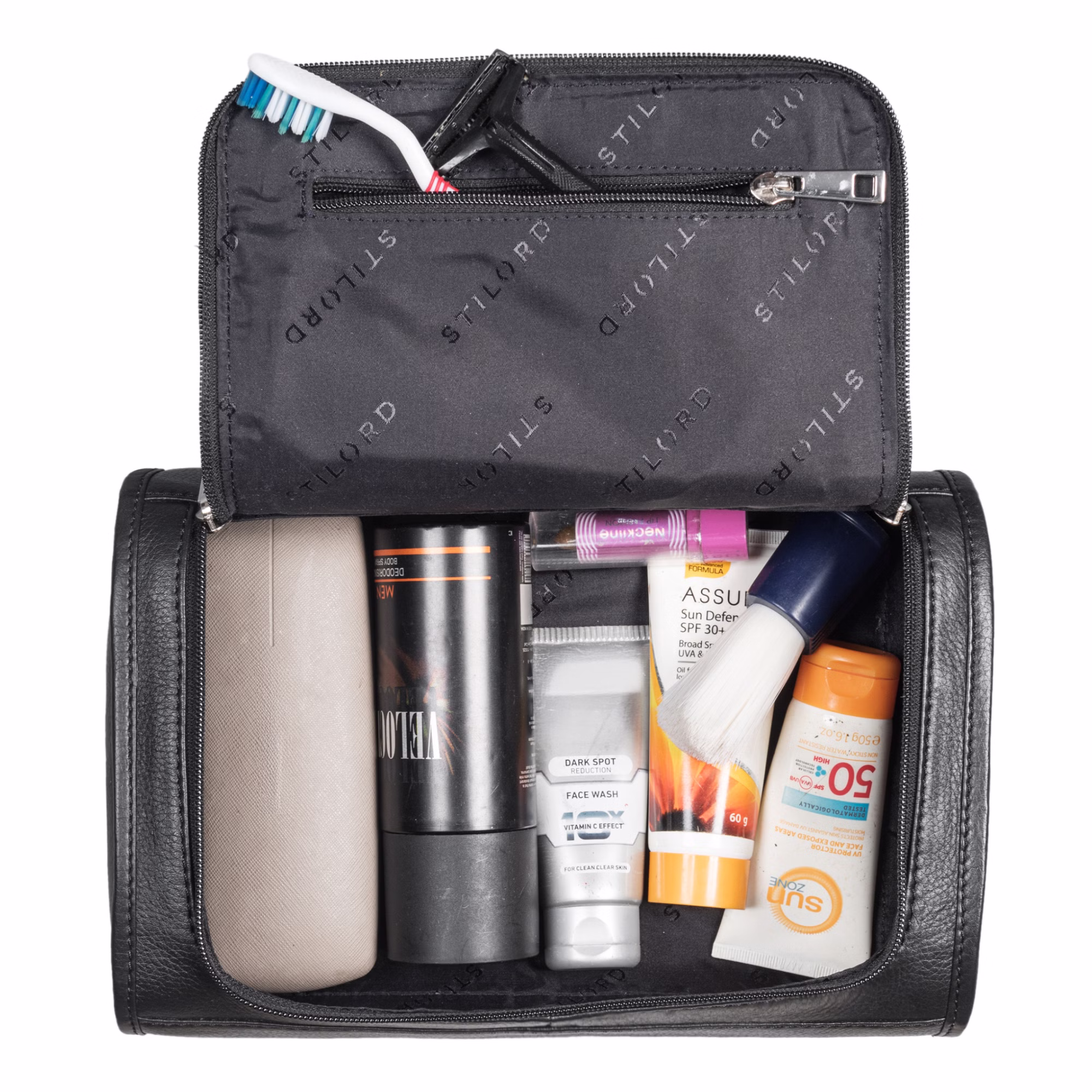 - Kompatybilność: Mnóstwo miejsca na wszystkie przybory do pielęgnacji i kosmetyki w dużej torbie toaletowej z prawdziwej skóry!