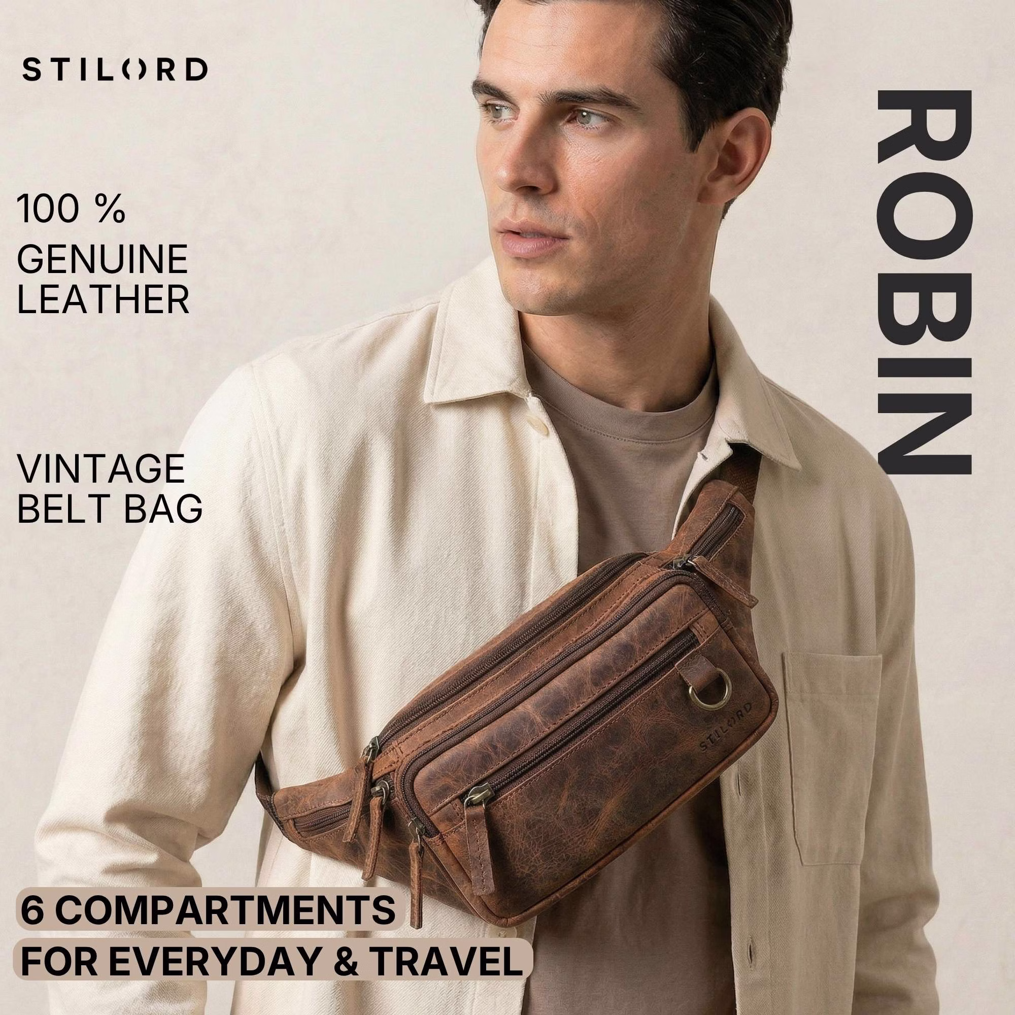 STILORD "Robin" Vintage Saszetka na Pasek ze Skóry Naturalnej