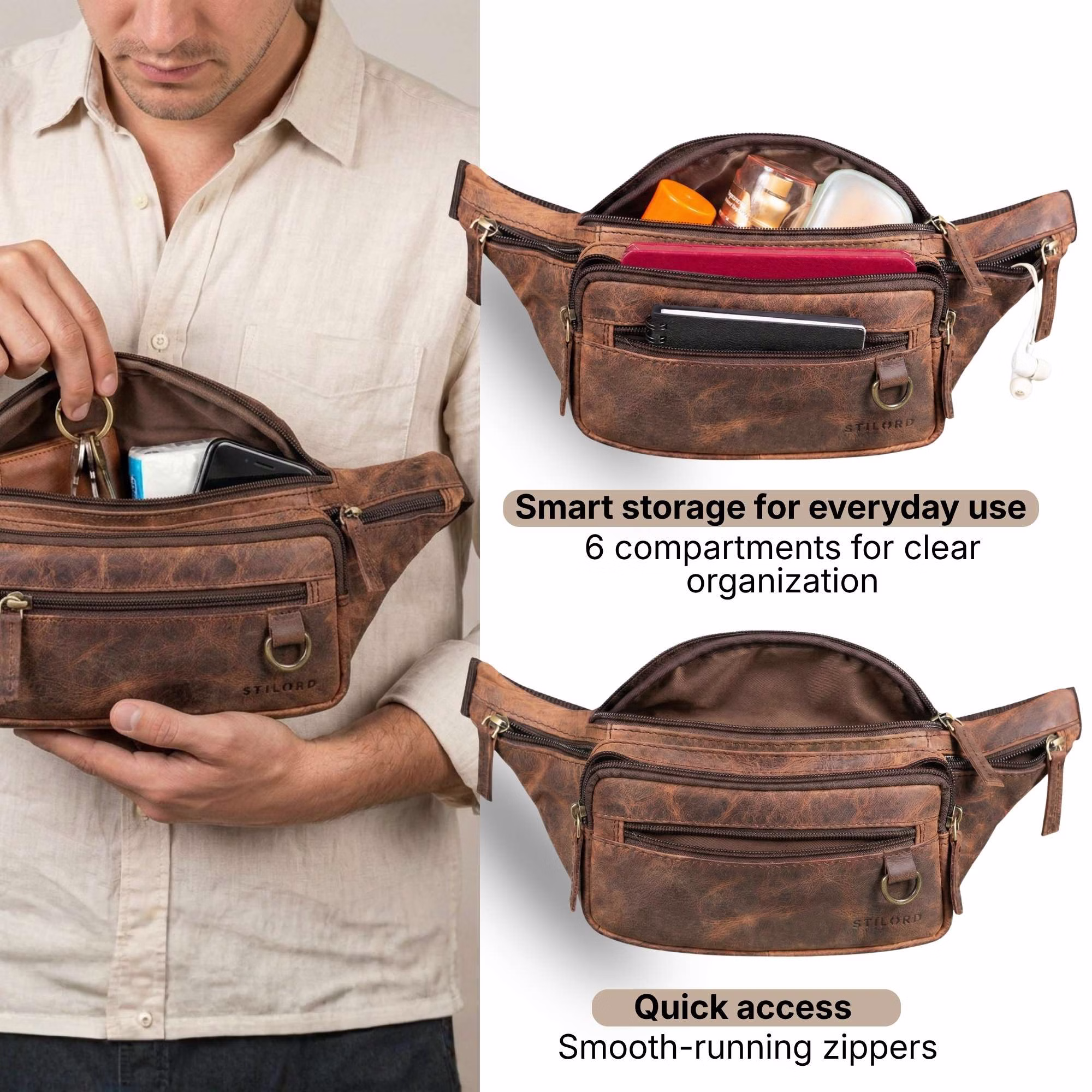 - BEZPIECZNA I PRZEMYŚLANA: Vintage saszetka skórzana dla mężczyzn z kieszenią antykradzieżową blisko ciała oraz 6 kieszeniami na zamek zapewnia bezpieczne miejsce na wartościowe rzeczy i najważniejsze przedmioty podczas podróży, wakacji, festiwali, koncertów, zakupów, spacerów czy joggingu