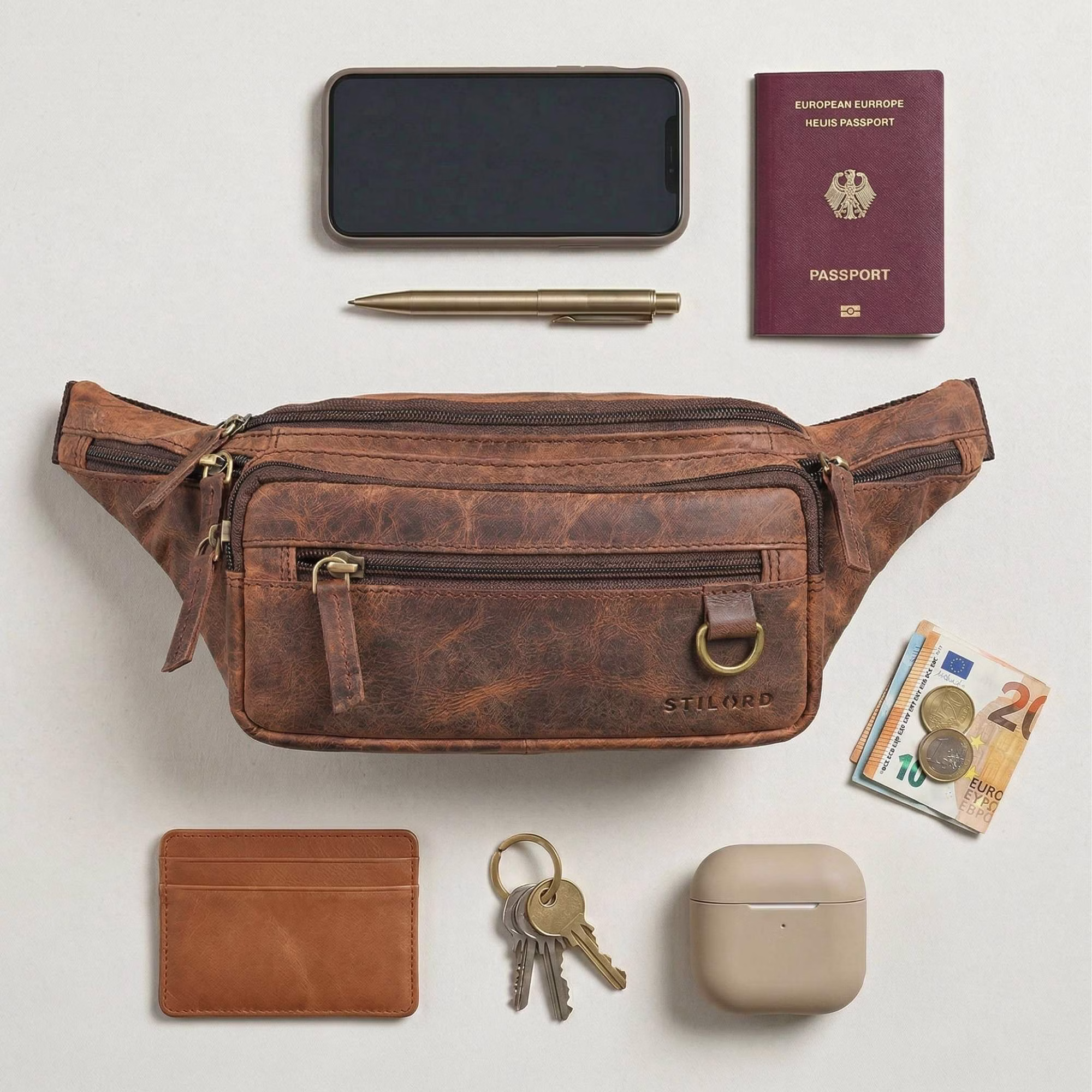Ta skórzana nerka została stworzona dla mężczyzn, którzy w podróży nie chcą zabierać ze sobą zbyt wiele, ale nie chcą rezygnować ze stylu, jakości i porządku. Niezależnie czy jesteś w podróży, w mieście, na spacerze czy na festiwalu: ta skórzana saszetka biodrowa dla mężczyzn trzyma Twoje najważniejsze rzeczy bezpiecznie przy ciele i zapewnia komfort noszenia. Sam decydujesz, jak chcesz nosić torbę skórzaną. Klasycznie na biodrach, swobodnie jako crossbody bag lub nowocześnie jako torba na klatkę piersiową. Regulowany pasek dopasowuje się elastycznie i sprawia, że ta vintage torba crossbody jest wygodnym towarzyszem na co dzień.