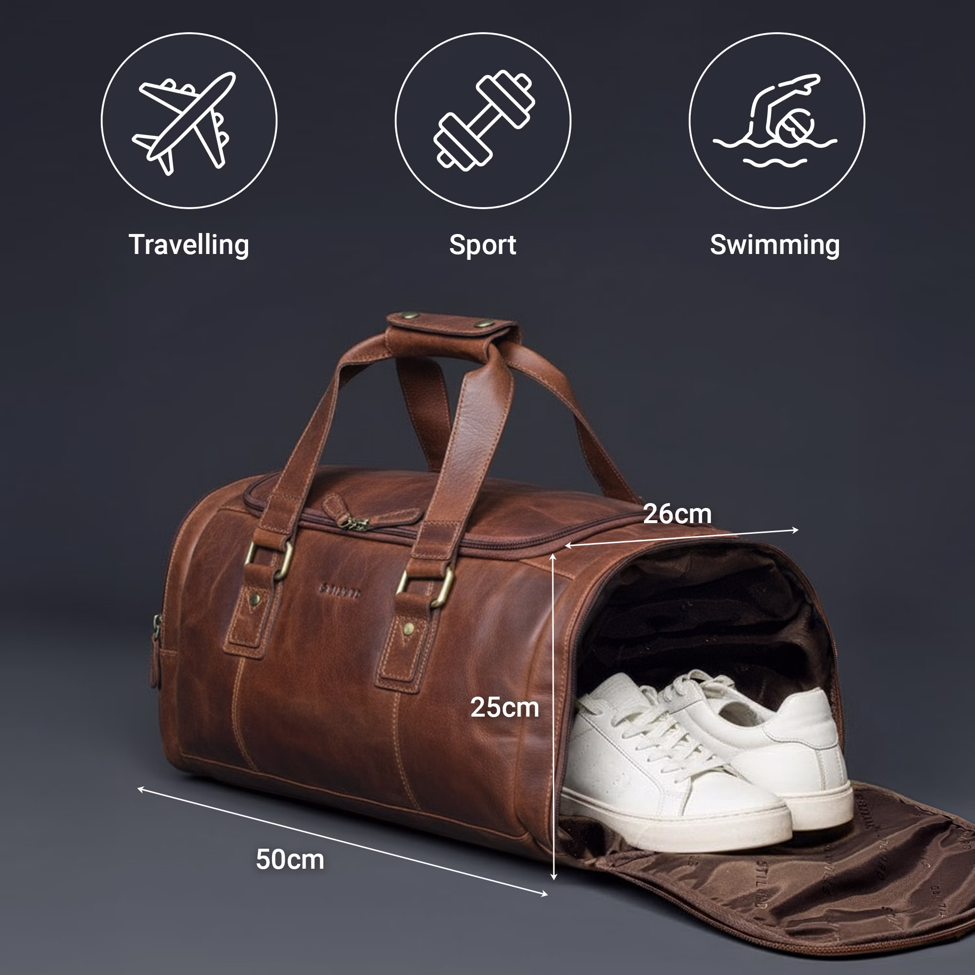 - WIELOFUNKCYJNA: Do zastosowania jako elegancka vintage torba fitness torba z przegrodą na buty torba treningowa gym bag bagaż podróżny torba z uchwytem torba podróżna i rekreacyjna skórzana torba piłkarska – niezawodny towarzysz na każdą okazję.