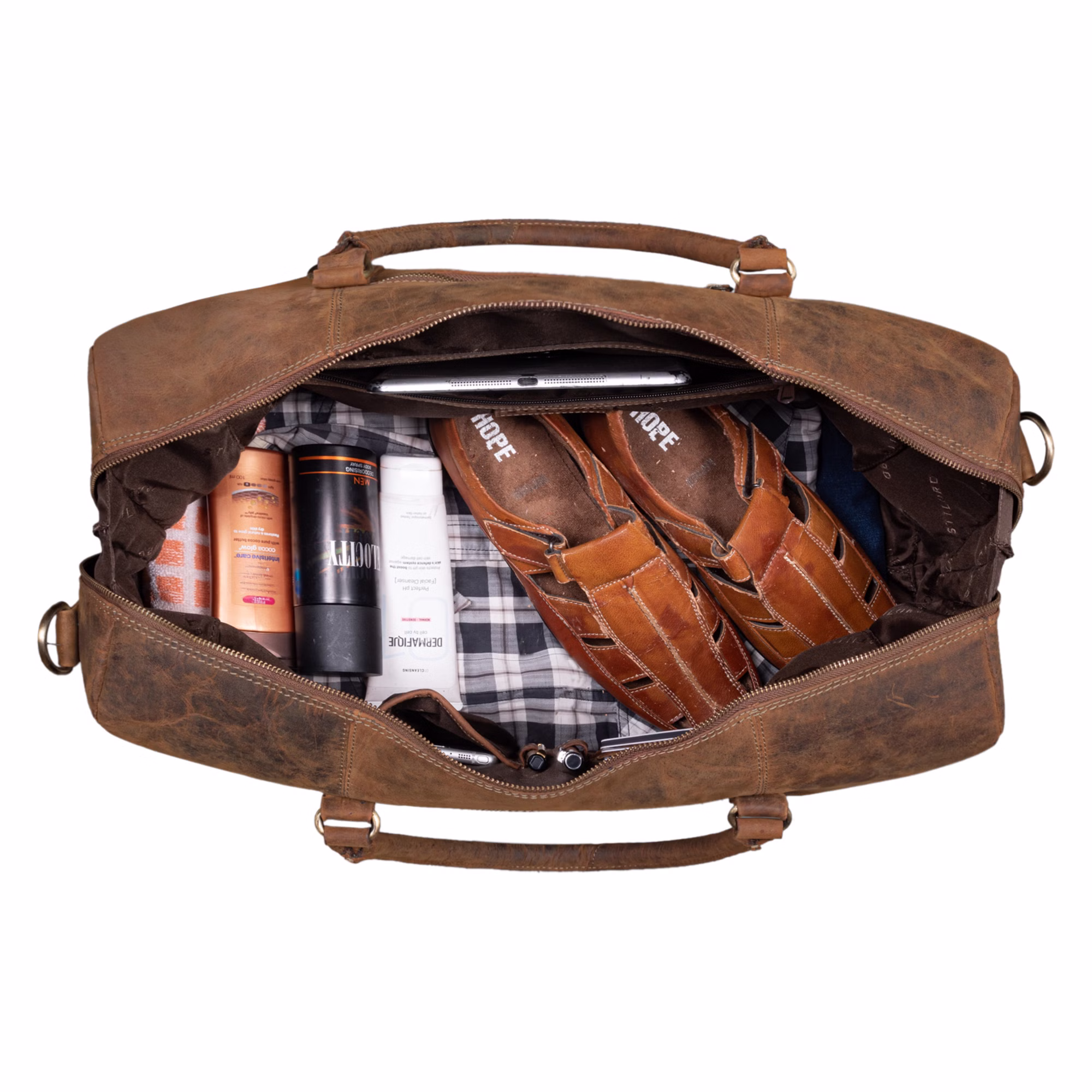 "Iska" Large Vintage Leather Travel Bag - Wszystko na pierwszy rzut oka: