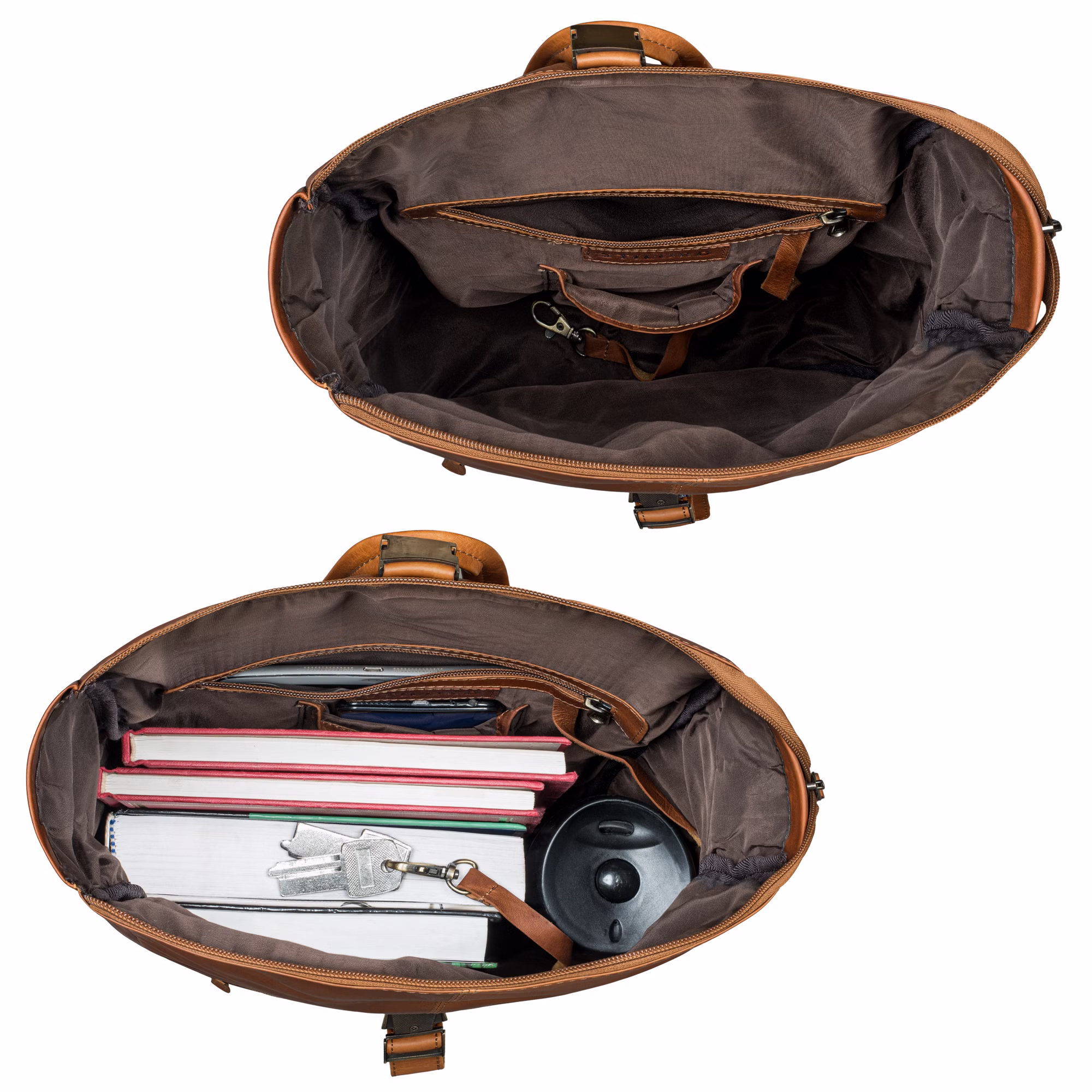 Skórzany plecak miejski „Cairo” dla mężczyzn i kobiet łączy w sobie nowoczesny, ponadczasowy design i najwyższej jakości naturalną skórę, tworząc niezastąpiony dodatek do codziennych przygód. Dzięki uniwersalnej konstrukcji typu roll-top, ten damski i męski plecak w stylu retro oferuje maksymalną elastyczność i możliwość personalizacji. Przestronna komora główna z łatwością pomieści laptopa o przekątnej do 48 cm (17,3 cala), butelkę wody o pojemności do 1,5 litra i szeroką teczkę A4 - idealną do codziennej pracy lub nauki. Dodatkowe przegródki zapinane na zamek i przemyślany układ zapewniają, że ważne przedmioty, takie jak karty debetowe, długopisy i klucze, są zawsze uporządkowane i gotowe do użycia. Plecak kurierski o konstrukcji roll-top skierowany jest do osób dbających o styl, ceniących wysoką jakość wykonania, funkcjonalność i wygodę. Odkryj lojalnego towarzysza na każdą przygodę z plecakiem „Cairo” klasy premium.