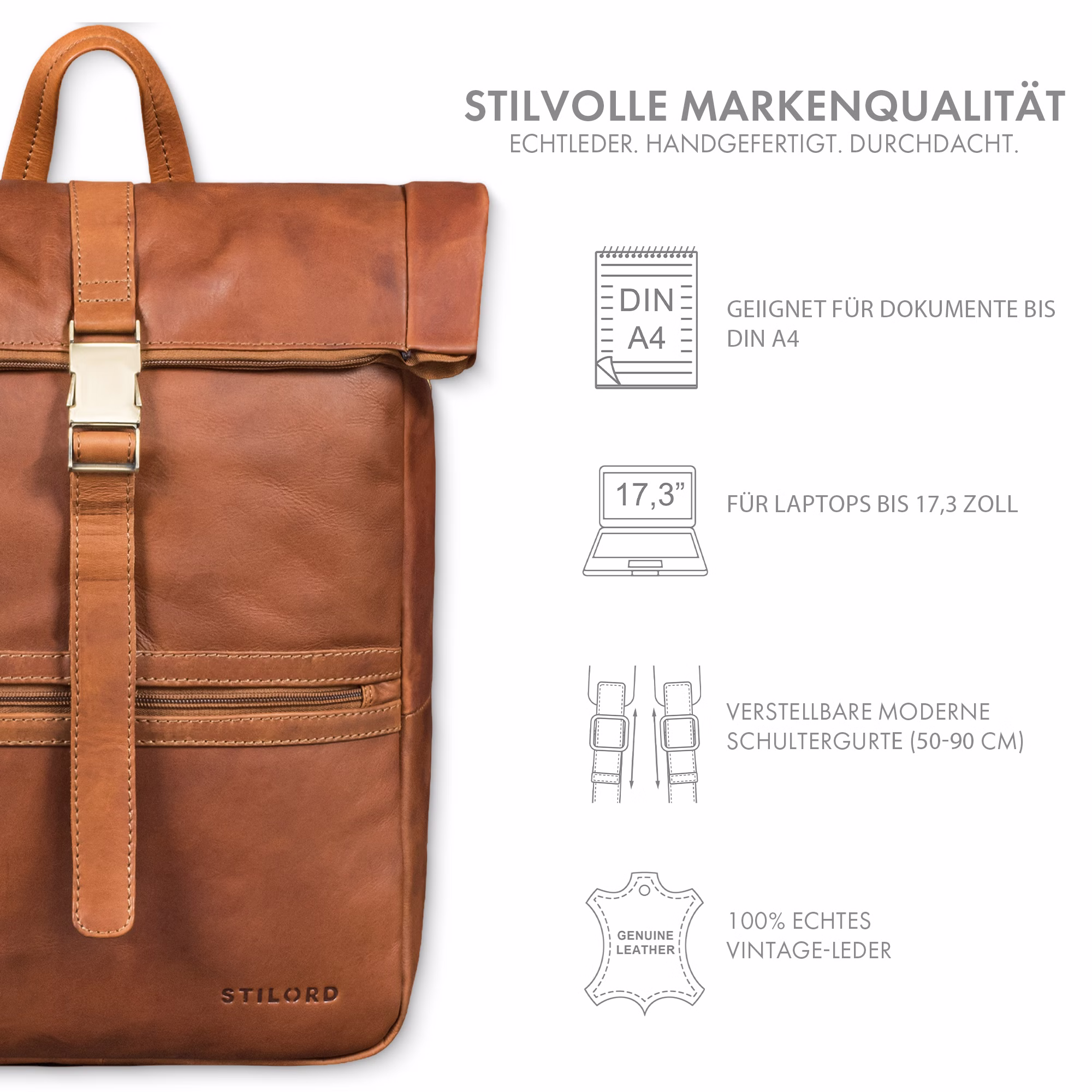 - NOWOCZESNY DESIGN, WYSOKIEJ JAKOŚCI MATERIAŁY: Męski i damski skórzany plecak typu aktówka „Cairo” marki STILORD łączy nowoczesny design typu roll-top z naturalną skórą naturalną, która jest zarówno stylowa, jak i trwała.