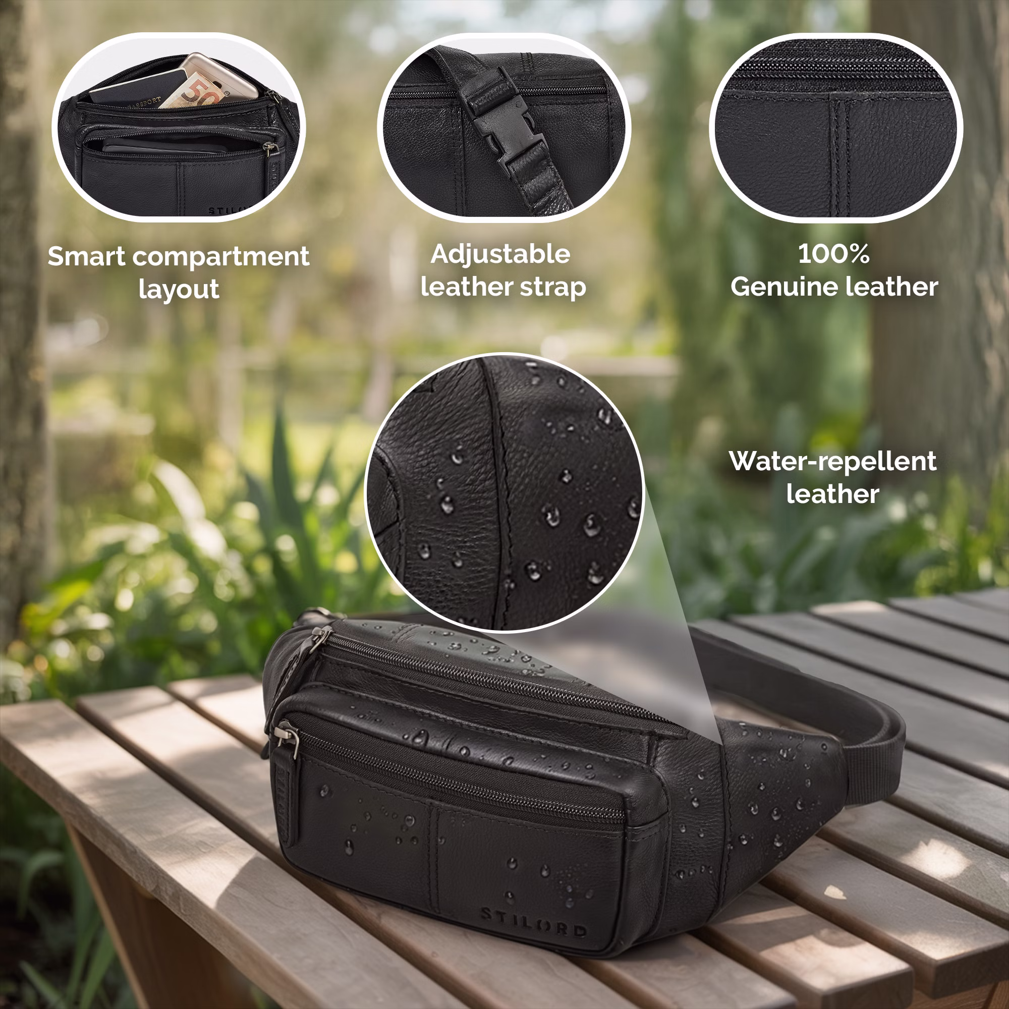 - WIELOFUNKCYJNA: Męska torba STILORD z prawdziwej skóry łączy nowoczesną jakość vintage z funkcjonalnością – idealna jako nerka na ramię dla mężczyzn | hip bag | torba na festiwal | elegancka nerka na pasku | saszetka na pierś | saszetka na pasku | bumbag i wiele więcej!