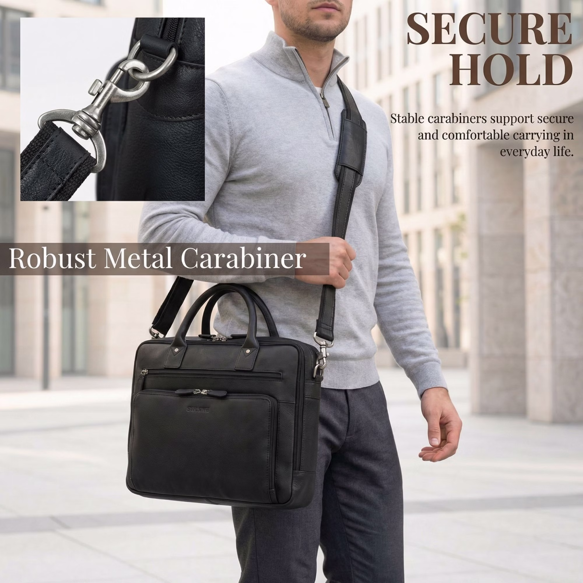 - ELASTYCZNE ZASTOSOWANIE: Jako torba biznesowa dla mężczyzn, torba na komputer lub klasyczna aktówka skórzana – ta torba dopasowuje się do Twojego dnia. Odpinany pasek na ramię (75 – 132 cm) z solidnym karabińczykiem, stabilna rączka oraz zintegrowany pas do walizki zapewniają komfortowe noszenie w biurze, w podróży lub podczas delegacji.