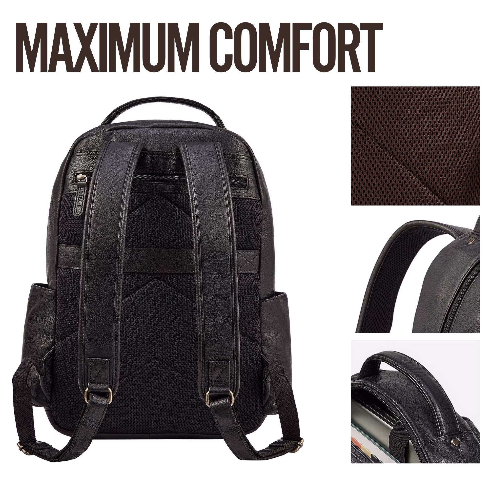 - KOMFORT NA CO DZIEŃ: Wyściełane szelki (68 – 90 cm), solidny uchwyt oraz praktyczny pas do walizki zapewniają wygodę noszenia. Ten plecak do pracy ze skóry dopasowuje się do codziennego rytmu.