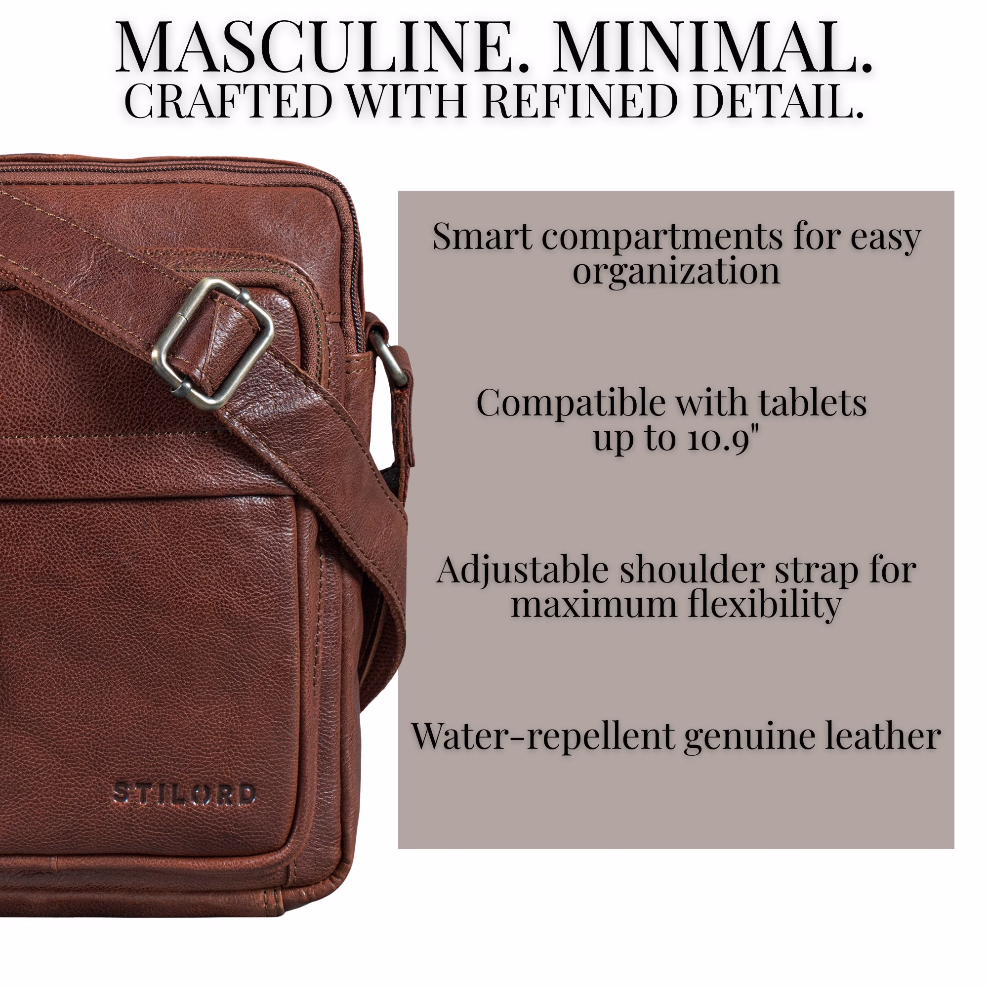 - Idealna jako mała męska torba crossbody, skórzana torba na ramię dla mężczyzn, kompaktowa męska torba kurierska lub praktyczna skórzana torba na ramię do podróży.