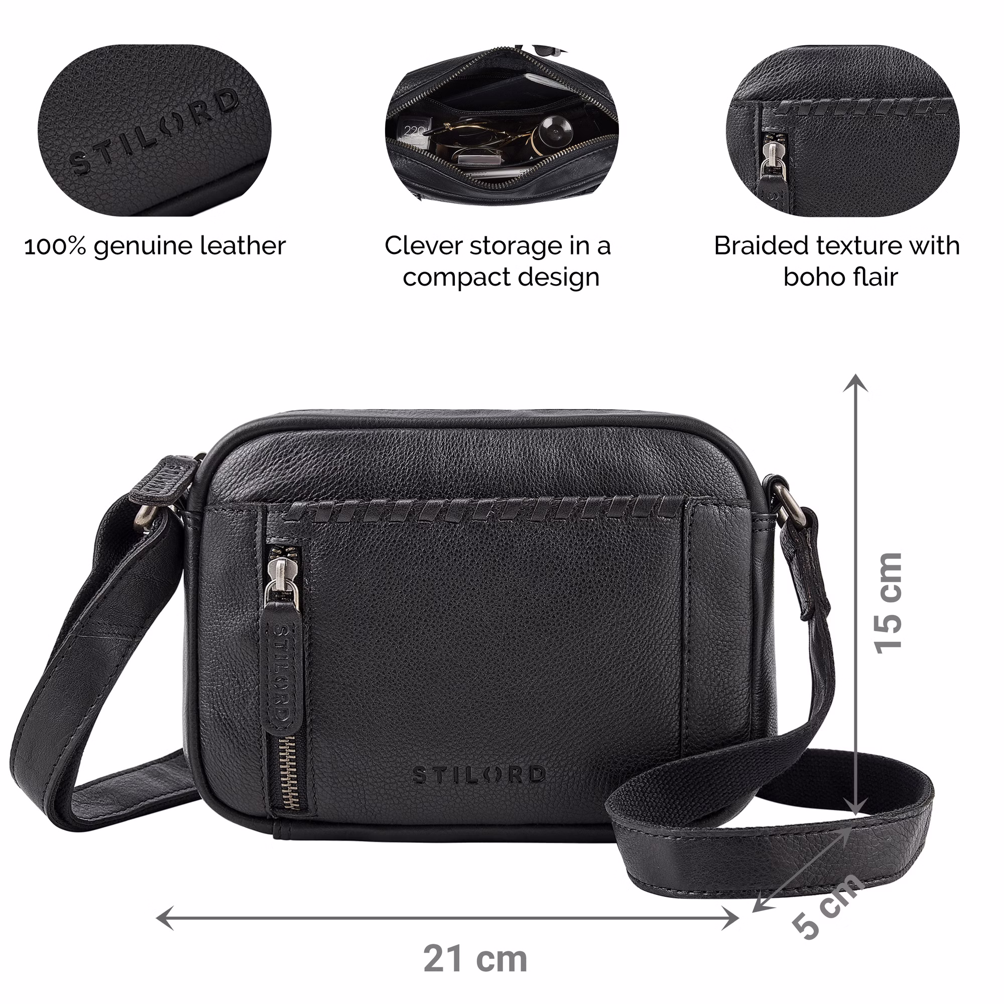 - SZCZEGÓŁY: Wymiary: 21 x 5 x 15 cm | Waga: 360 g | Model: „Marisa” | Materiał: prawdziwa skóra bydlęca | Marka: STILORD | Kompatybilność: iPad Mini (8,3 cala) | Cechy szczególne: regulowany pasek na ramię, subtelna plecionka, kieszeń zabezpieczona przed kradzieżą