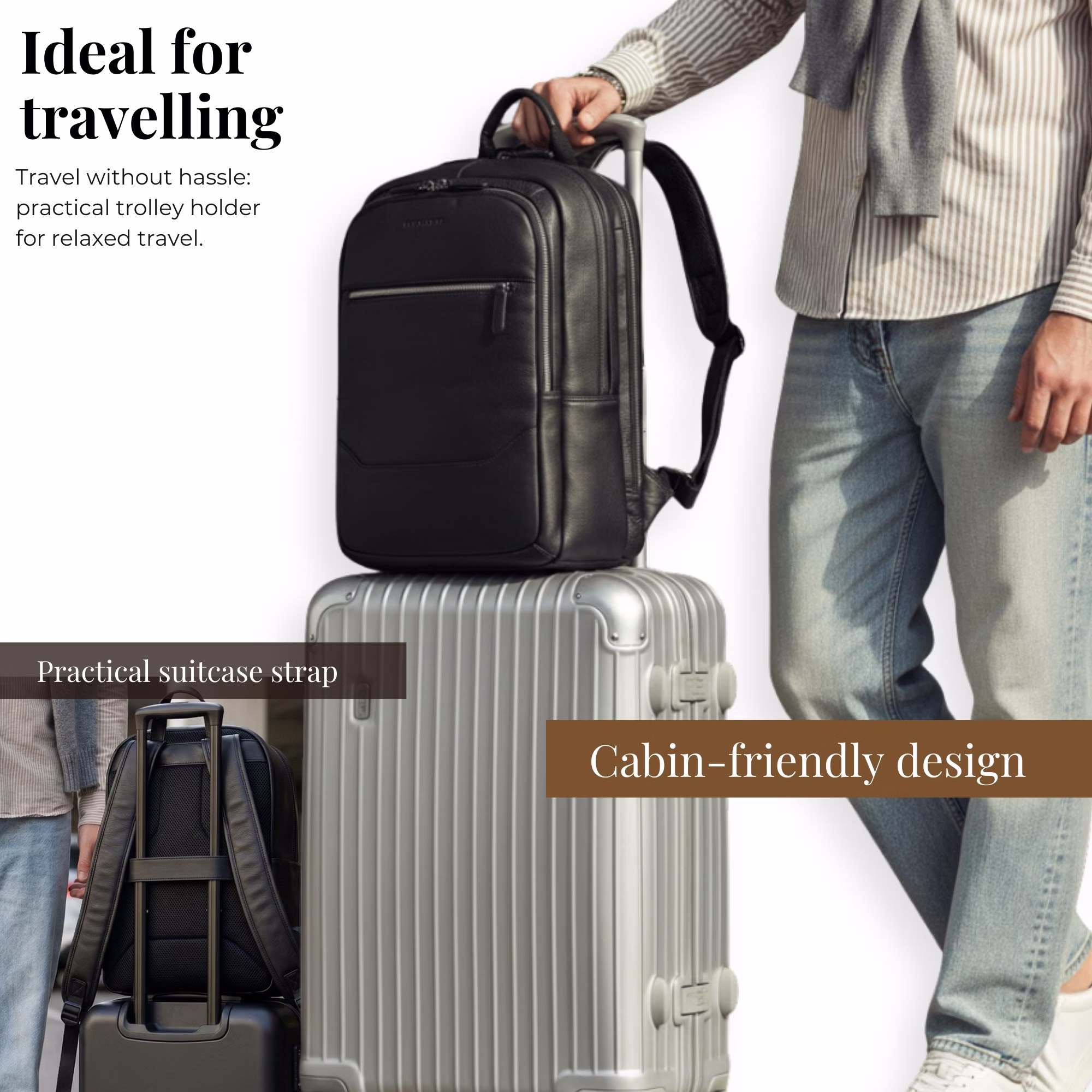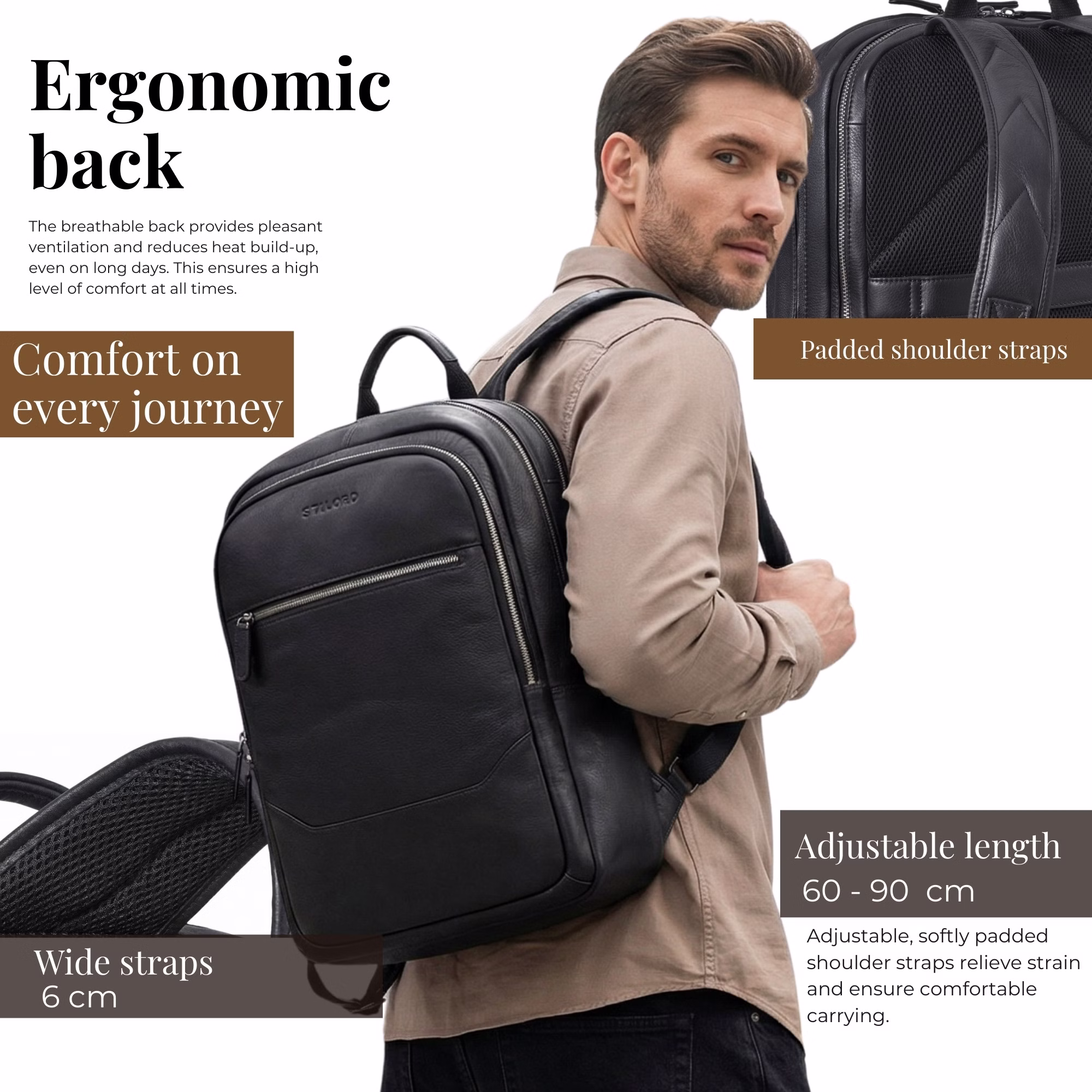 - ZAWSZE W RUCHU: Wyściełane plecy, regulowane i wzmocnione szelki, skórzana rączka oraz praktyczny pasek do zamocowania na walizce zapewniają wygodę i elastyczność noszenia — doskonałe w podróży i na co dzień.