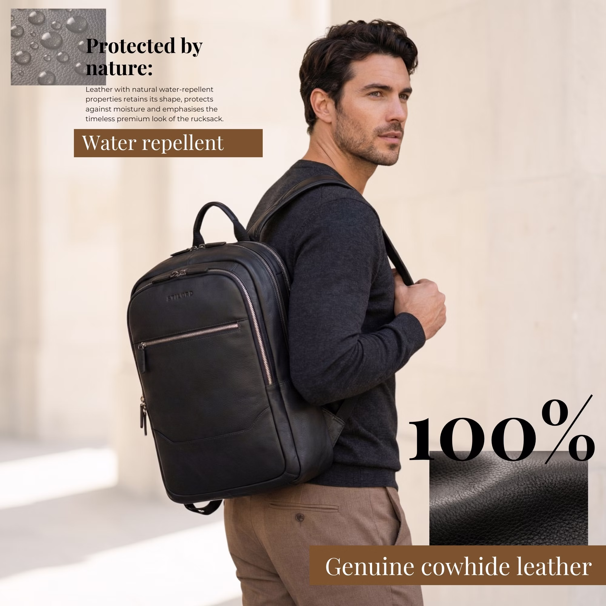 - Duży męski plecak ze skóry naturalnej: trwały, solidny i wysokiej jakości – idealny jako plecak do pracy, plecak codzienny lub plecak biznesowy.