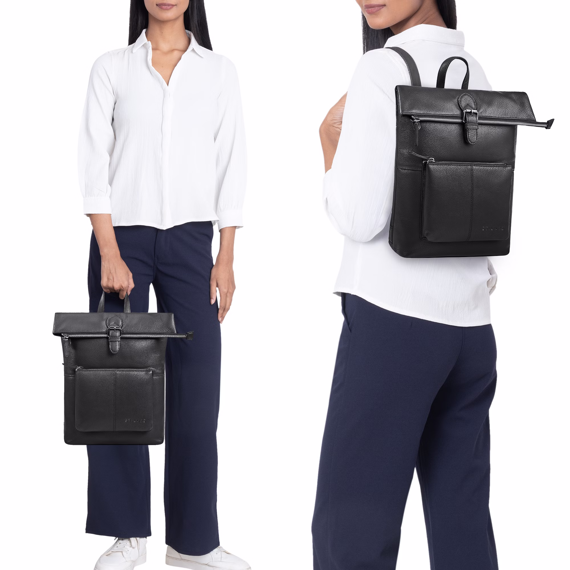 Praktyczny system rolltop pozwala elastycznie zwiększyć pojemność, gdy tego potrzebujesz. „Niagara” to zatem plecak dzienny, backpack, plecak na ramię i skórzana torebka w jednym – wykonany z wysokiej jakości prawdziwej skóry naturalnej.