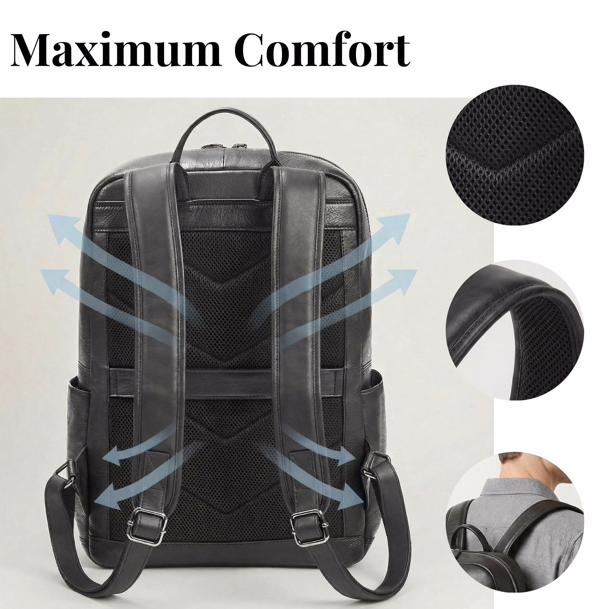- PRZECHOWYWANIE XL: skórzany plecak na laptopa 15,6 cali | 2 x główne przegrody, wsuwane i zapinane na suwak przegrody | na szerokie teczki, książki A4, 1,5-litrową butelkę wody