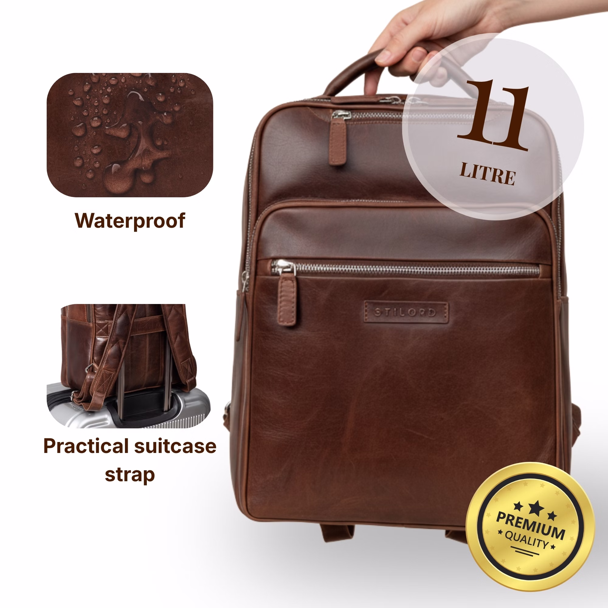 Bezpieczny i trwały: Skórzany plecak wodoodporny – nasza skóra jest odporna na wilgoć i zapewnia ochronę nawet podczas deszczu.