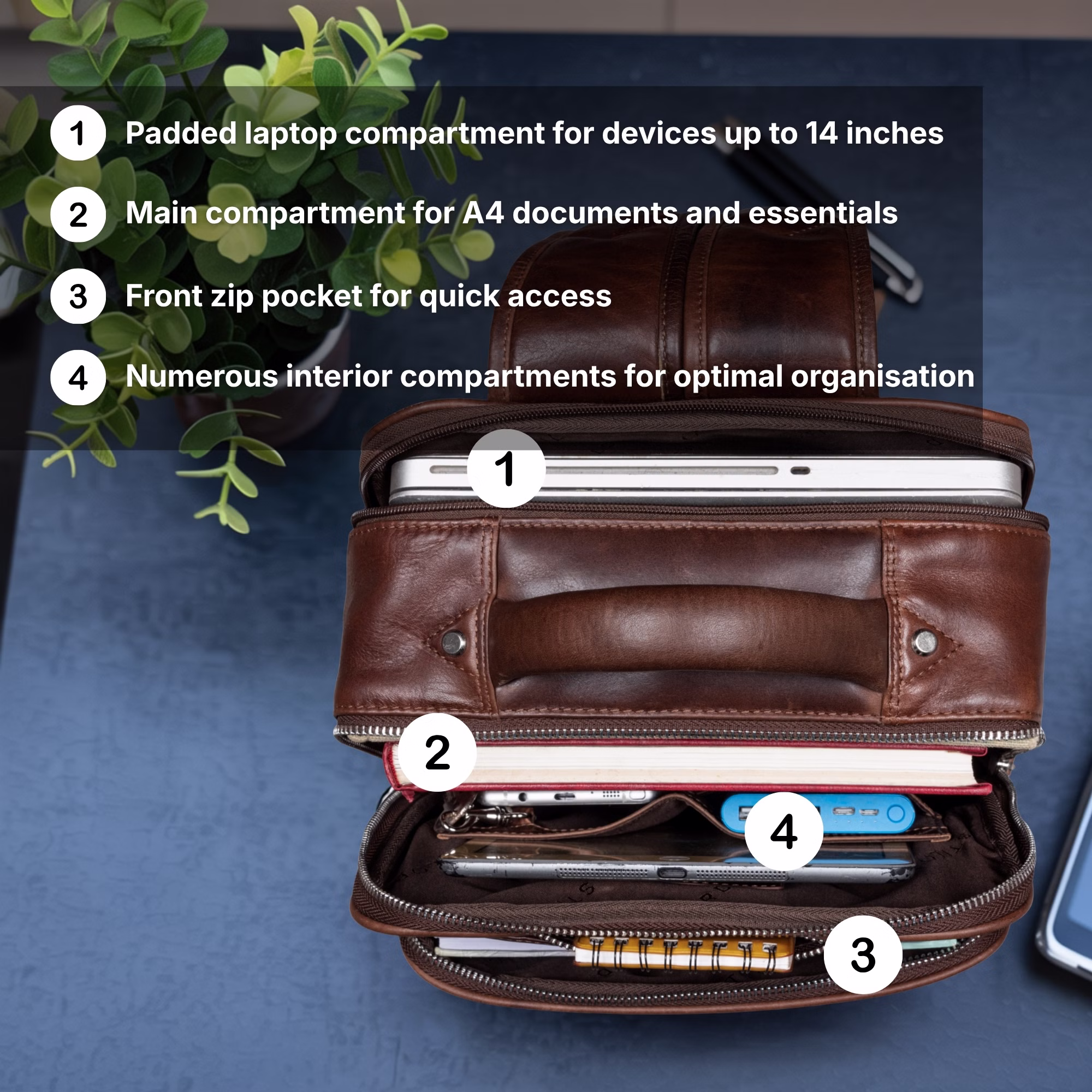 - STYLOWY DAMSKI PLECAK SKÓRZANY: Plecak ze skóry damski z naturalnej skóry łączy styl, komfort i funkcjonalność. Jako plecak z wieloma kieszeniami oferuje miejsce na laptopa do 14 cali, dokumenty w formacie DIN A4 oraz najważniejsze akcesoria – idealny do biura, na uczelnię i w podróż.