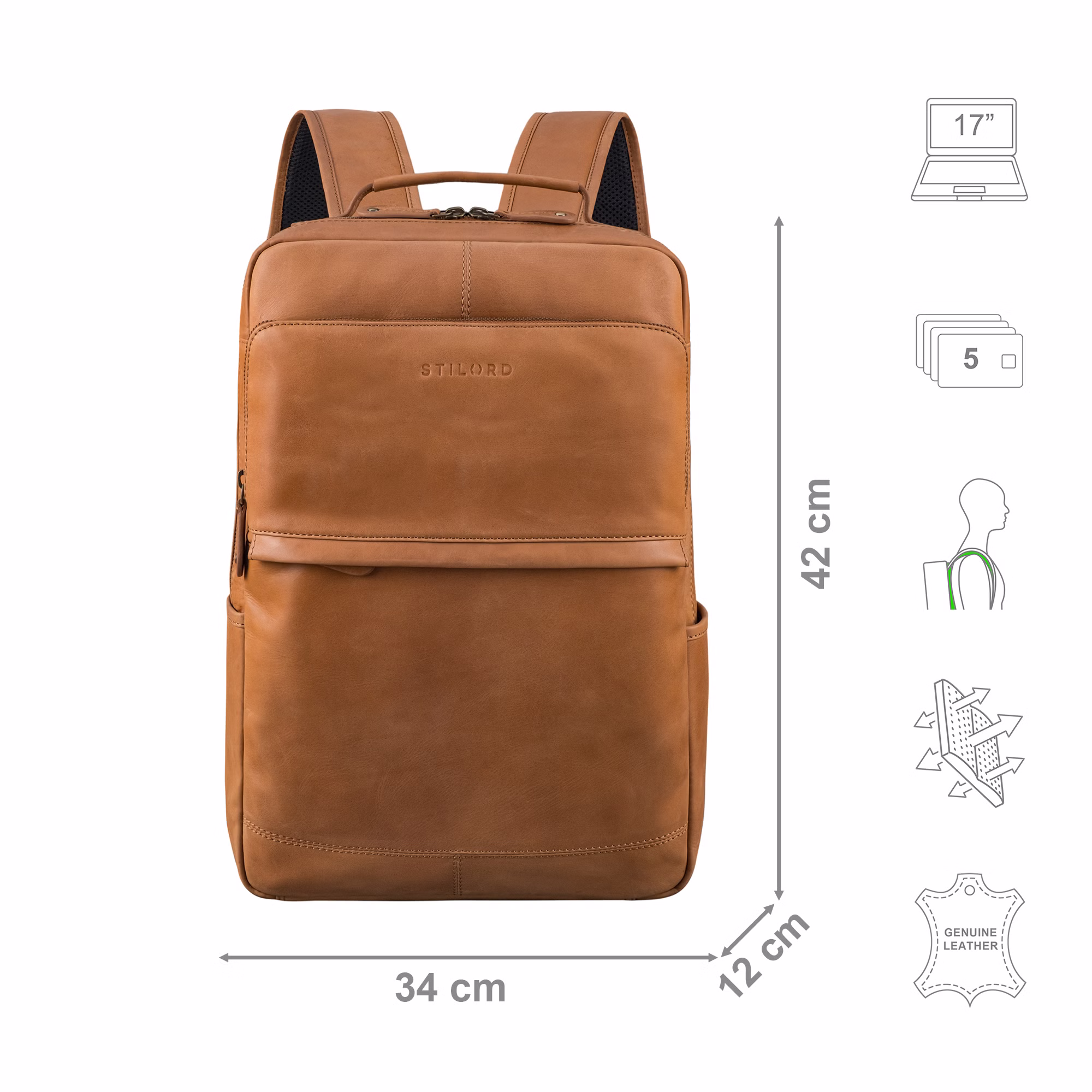 - SZCZEGÓŁY PRODUKTU: Wymiary: 34 x 12 x 42 cm | Waga: 990 g | Model: "Sasha" | Materiał: naturalna skóra | Marka: STILORD | Kompatybilność: laptopy 13 14 15 15.6 16 17 cali | Cechy: wiele kieszeni, szerokie paski, komfortowy tył.