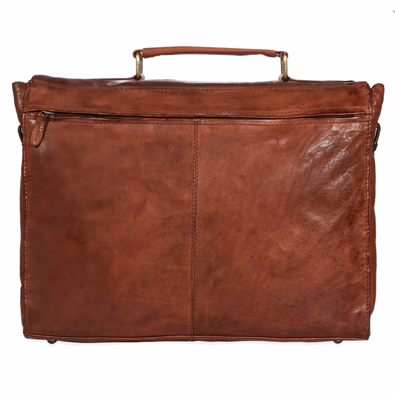 Teczka "Richard" jest nowoczesną odpowiedzią na klasyczną torbę biznesową. Połączenie pranej skóry bydlęcej i nowoczesnego wyglądu używanej sprawia, że ta torba biznesowa jest wyjątkowym i niepowtarzalnym elementem. Worek roboczy jest wstępnie obrabiany w delikatnym procesie mycia, co powoduje odchylenia kolorystyczne, zadrapania na elementach metalowych i przyspieszony proces starzenia - charakter antyczny na najwyższym poziomie! Organizacja wnętrza torby biurowej opiera się na klasycznej zasadzie zakwaterowania: duża komora główna jest podzielona na dwie oddzielne komory, odpowiednie na książki, teczki A4 i laptopy 15,6 cala, dwie komory na zamek błyskawiczny i odpinany 13,3 calowy rękaw na laptop. Dzięki odpinanemu paskowi na ramię, torba na ramię jest jednocześnie rączką i torbą na ramię - wszechstronną teczką w charakterystycznym, starym stylu!