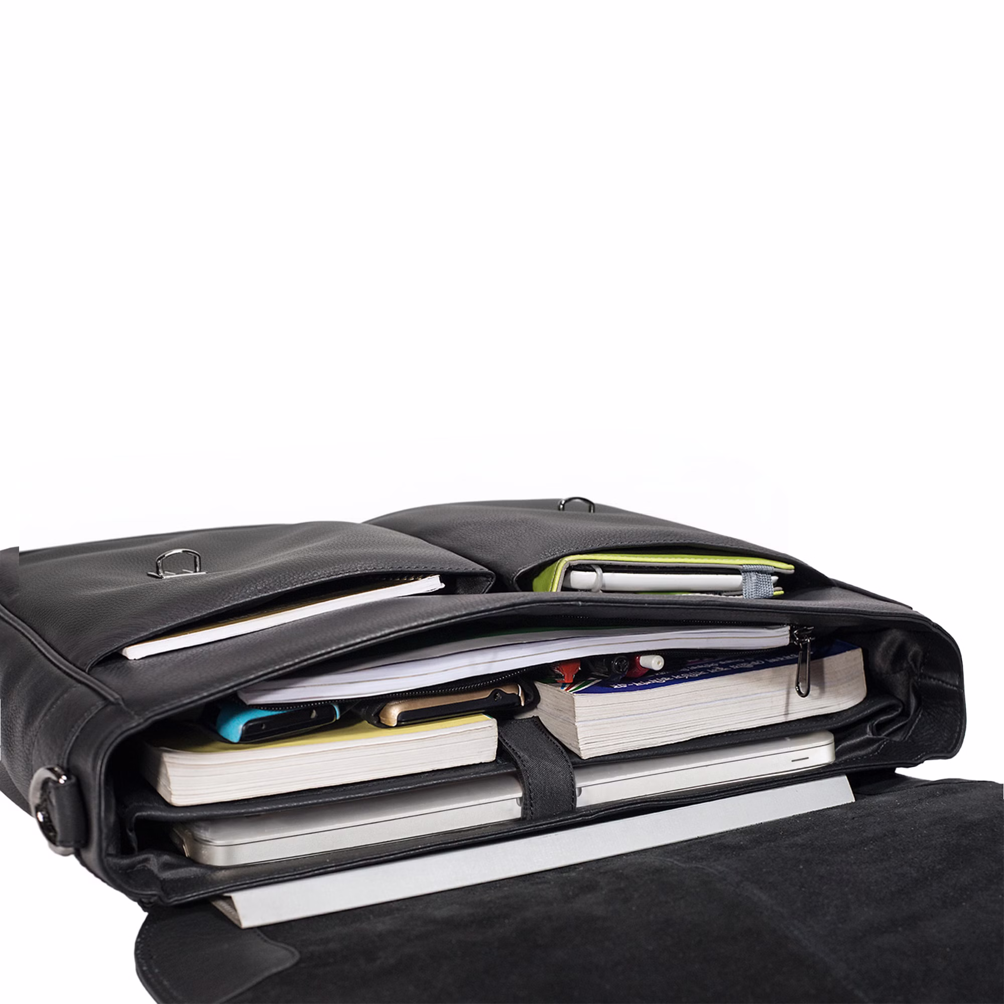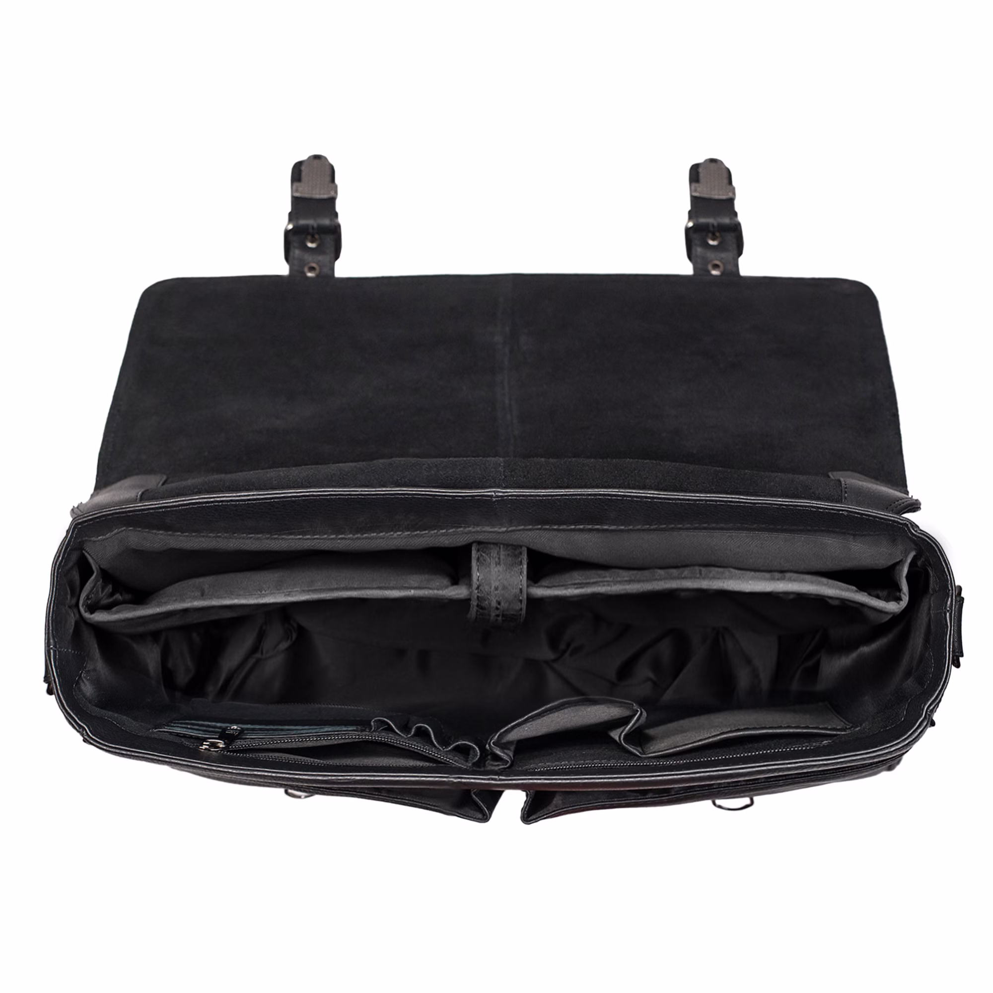 - Bezpieczne zamknięcie: Aktówka Skórzana z klapą i dwoma mocnymi sprzączkami