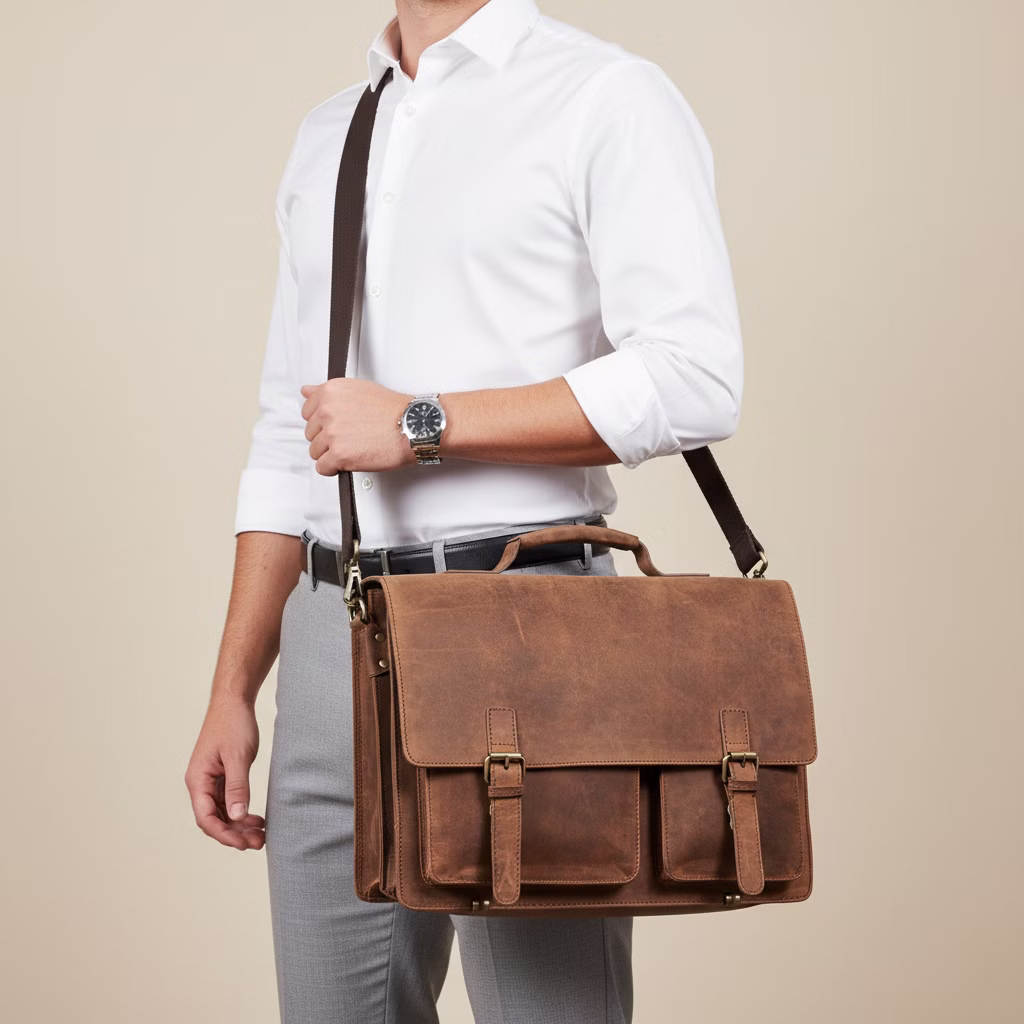 - Duża torba biznesowa dla mężczyzn i kobiet wykonana z prawdziwej skóry bawolej