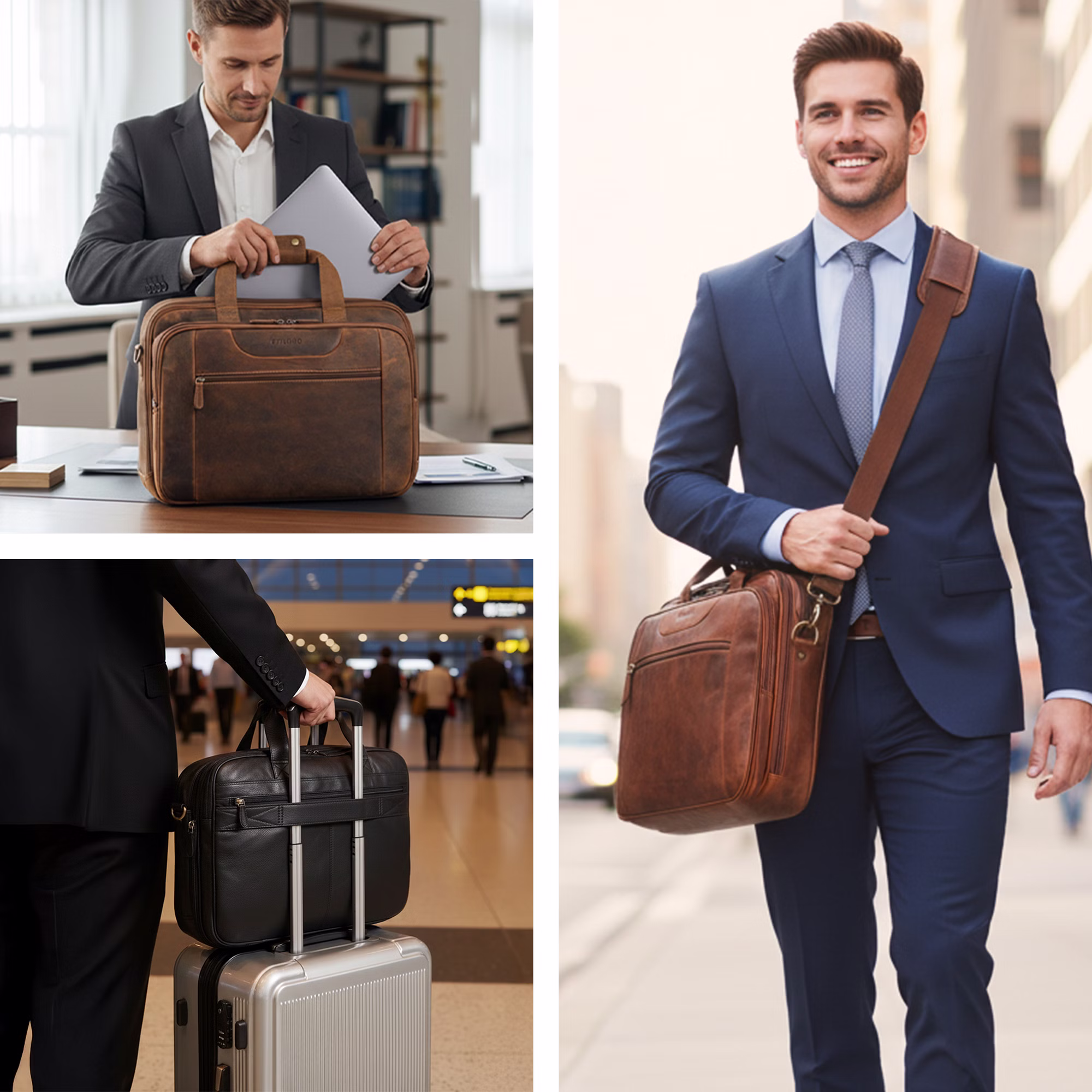 - ELASTYCZNOŚĆ I WYGODA: Torba biznesowa męska z uchwytem do ręki, regulowanym i odpinanym paskiem na ramię (75–135 cm) oraz paskiem trolley. Do noszenia jako torba na ramię, torba aktówka lub klasyczna skórzana teczka.
