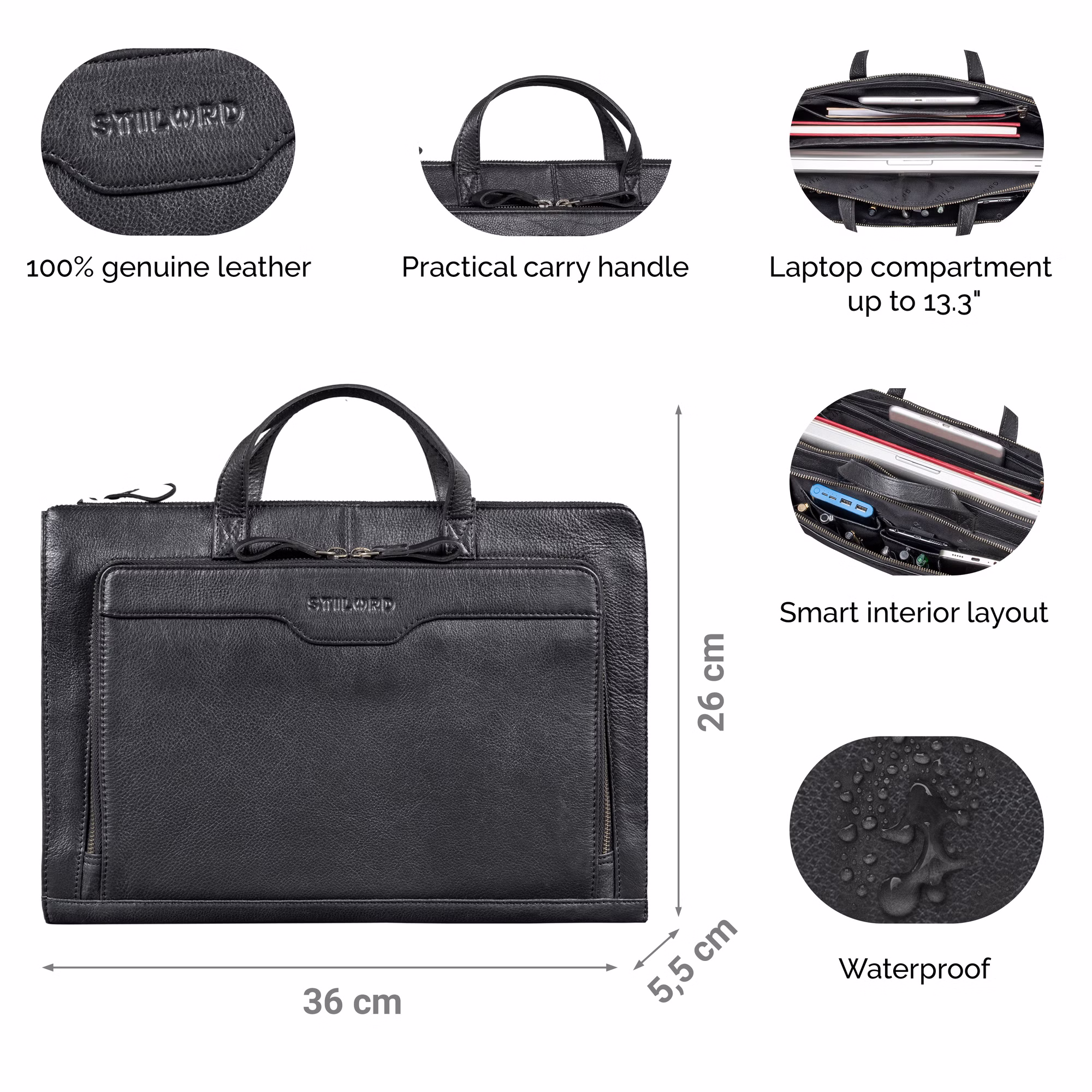 - SZCZEGÓŁY: Wymiary: 36 cm x 5,5 cm x 26 cm | Waga: 600 g | Model: "Silvano" | Materiał: skóra naturalna | Producent: STILORD | Kompatybilność: laptop 13,3", tablet 13,3", dokumenty A4 | Cechy: wszechstronna organizacja, elegancki design