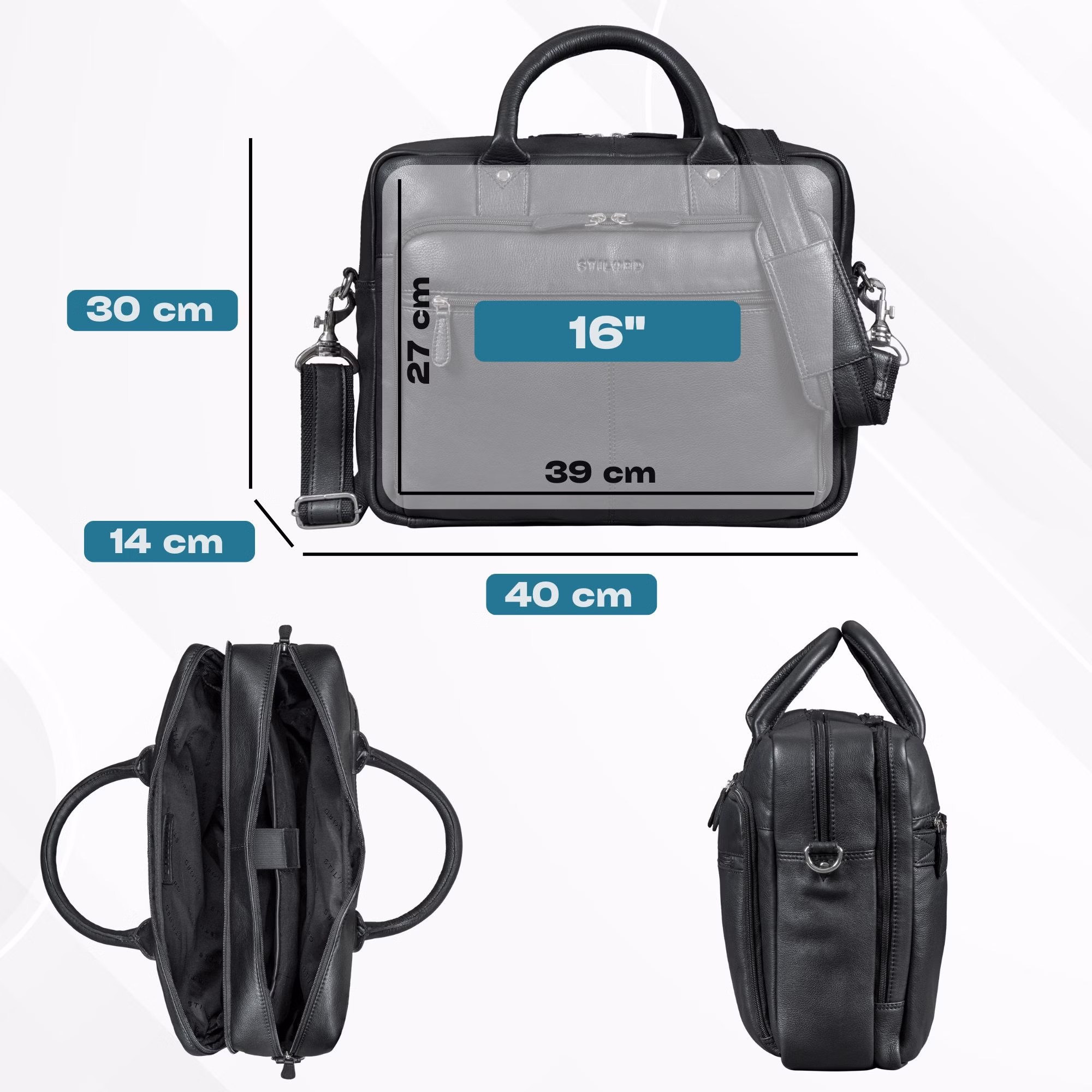 - SZCZEGÓŁY: Wymiary: ok. 40 x 14 x 30 cm | Waga: 1500 g | Model: "Jerome" | Materiał: prawdziwa skóra bydlęca | Marka: STILORD | Kompatybilność: laptopy do 16 cala lub MacBook 16 cali