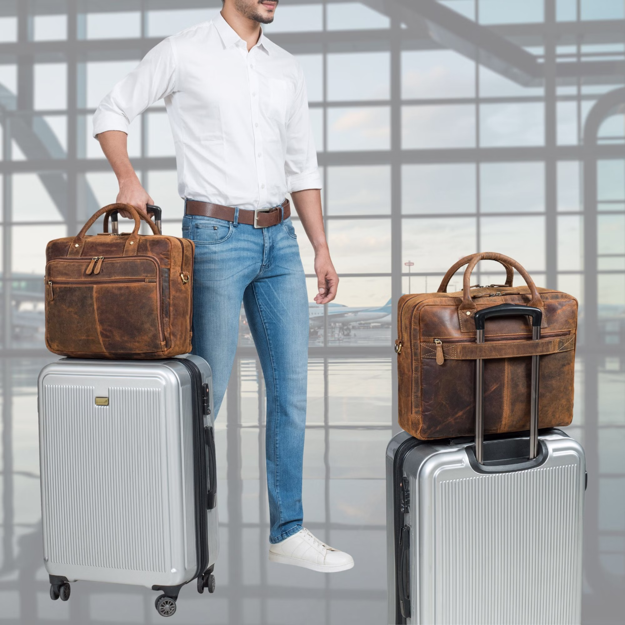 Zarówno w biurze, w podróży, jak i na co dzień – ekskluzywna torba biznesowa skórzana męska "Jerome" łączy w sobie styl, funkcjonalność i komfort. Dzięki wyściełanej przegrodzie na laptopa 15,6 cala, przemyślanemu wnętrzu i solidnym uchwytom, ta teczka na laptopa to idealny towarzysz do pracy, nauki i spotkań. Regulowany i odpinany pasek na ramię z miękką podkładką zapewnia elastyczne i wygodne noszenie – maksymalny komfort i niezawodność, gdziekolwiek jesteś.