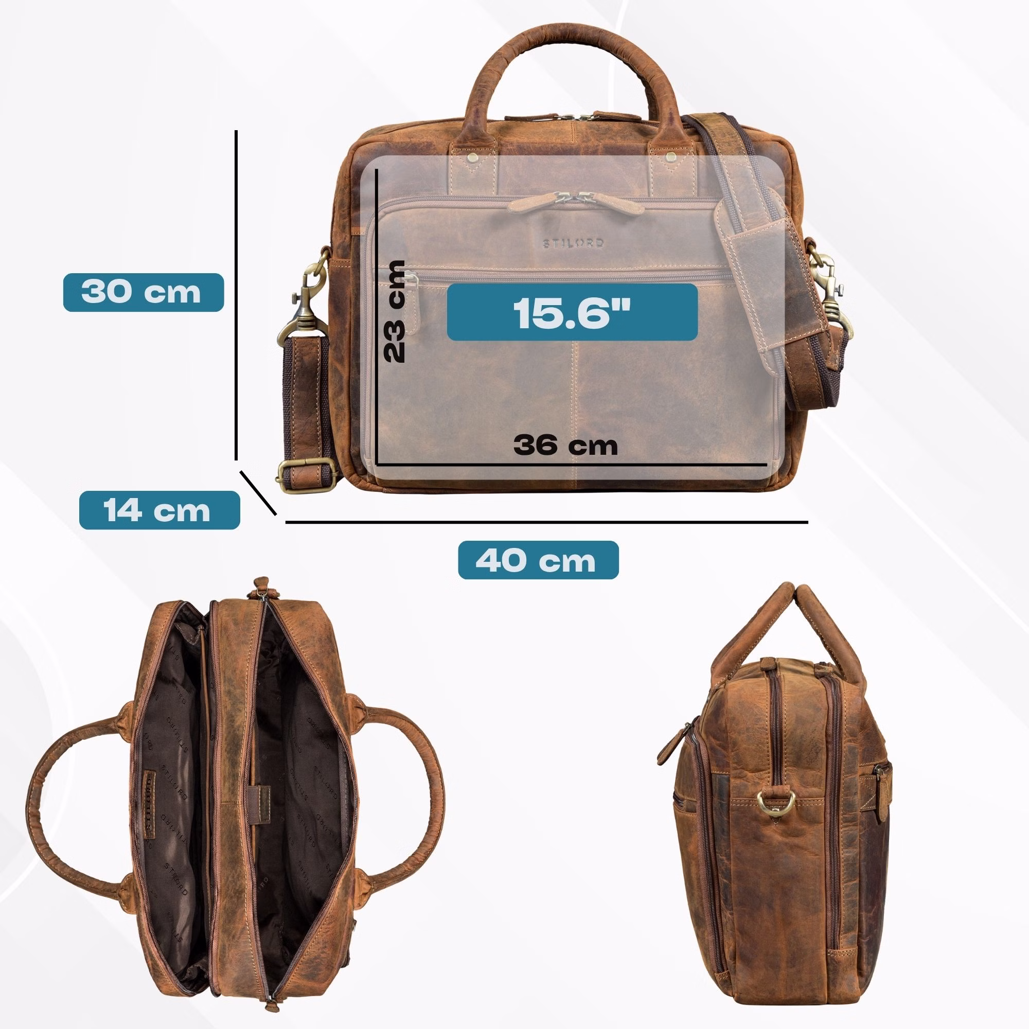 - SZCZEGÓŁY: Wymiary: ok. 40 x 14 x 30 cm | Waga: 1500 g | Model: "Jerome" | Materiał: prawdziwa skóra bydlęca | Marka: STILORD | Kompatybilność: laptopy do 15,6 cala lub MacBook 16 cali (37 x 27 cm)