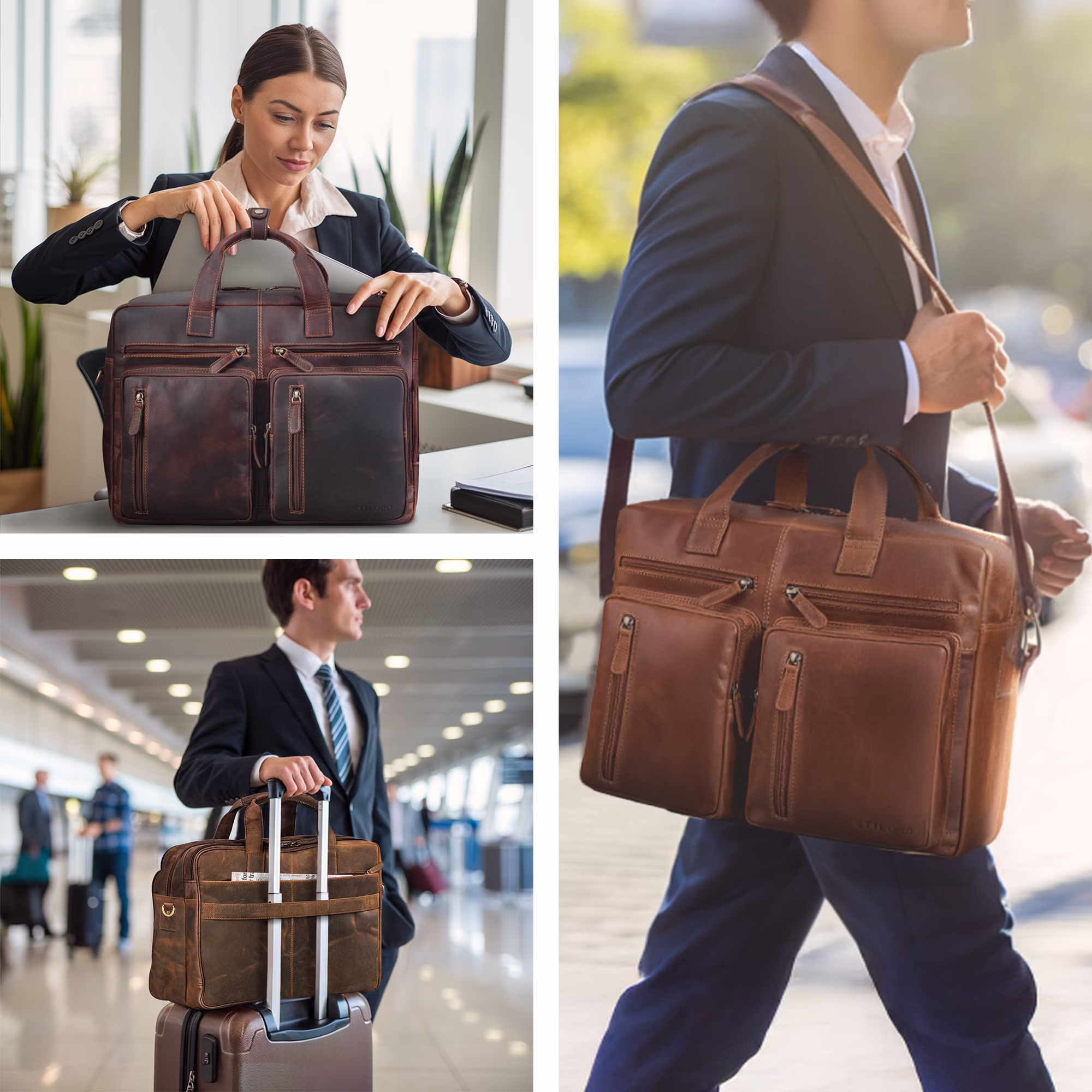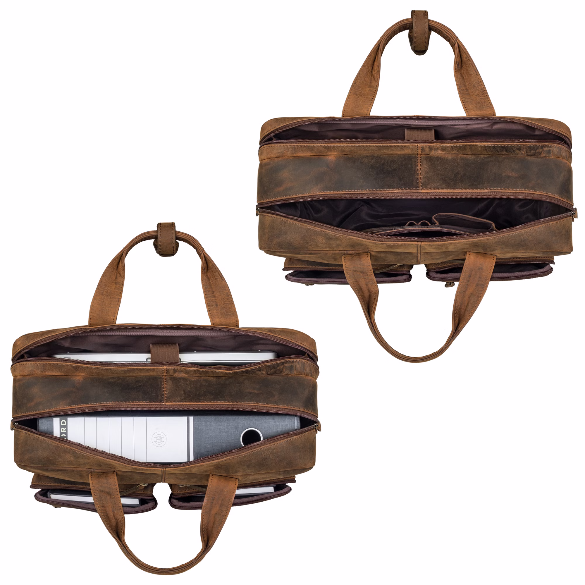 - MAKSYMALNA POJEMNOŚĆ: Ta przestronna torba skórzana to nowy standard organizacji. Wyściełana przegroda zabezpiecza laptopa, a szerokie segregatory A4 i notatniki mieszczą się bez problemu. Idealna dla tych, którzy potrzebują miejsca na wszystko, co ważne.