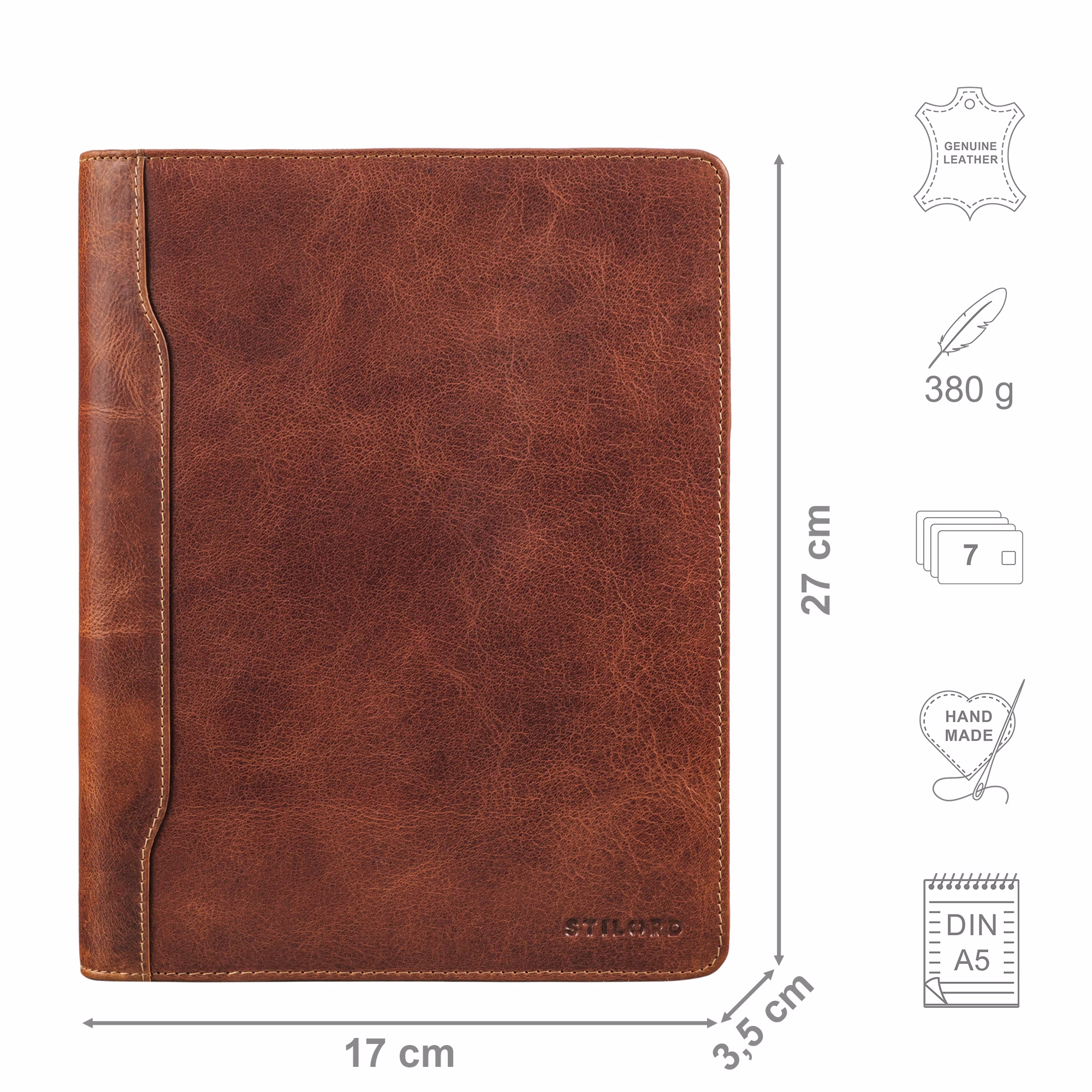 STILORD "Roland" Skórzana teczka A5 dla mężczyzn i kobiet - zorganizowana elegancja dla Twojego sukcesu
