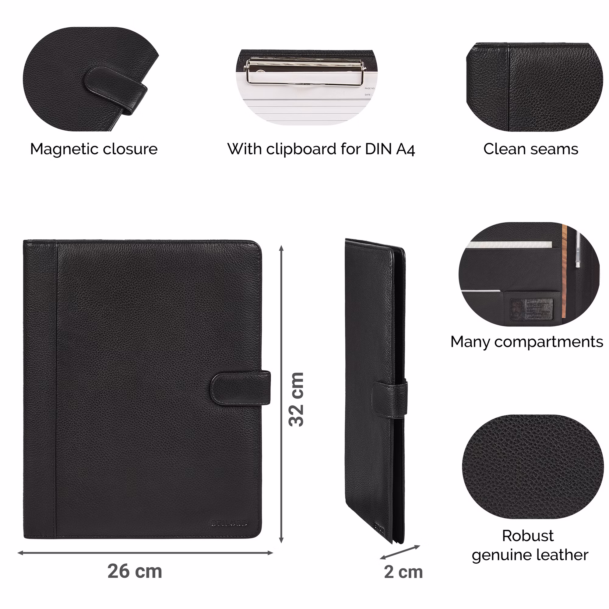 - PAPIER KONFERENCYJNY Z SKÓRY: skórzana teczka na dokumenty z klipem | odpowiedni na notatnik A4 | z bezpiecznym zamknięciem magnetycznym do szybkiego i łatwego zamykania teczka biznesowa
