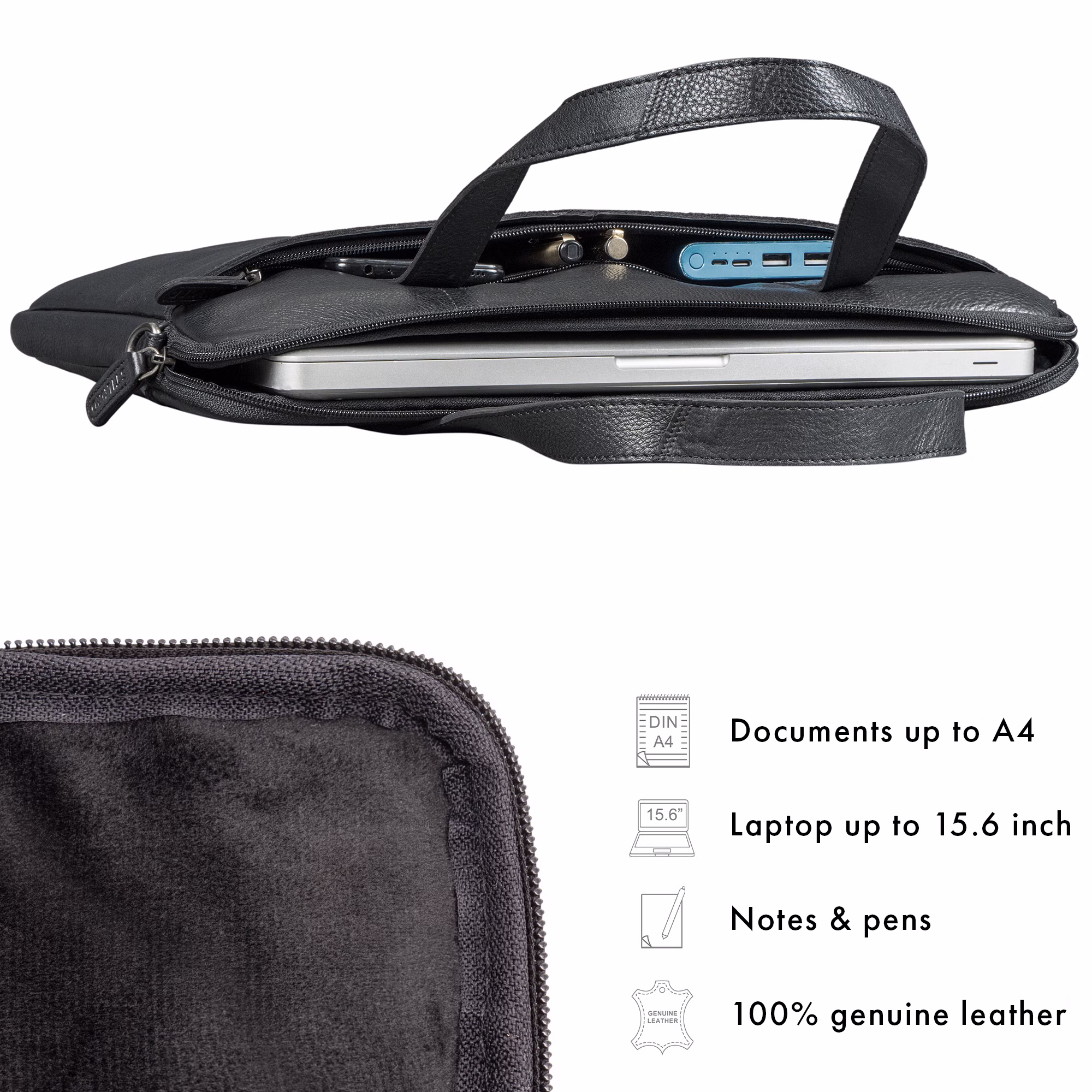 - Bezpieczna ochrona laptopa: wyściełana komora (38 × 24 cm) chroni urządzenia do 15,6 cala – idealna również jako torba na MacBook 16 cali.