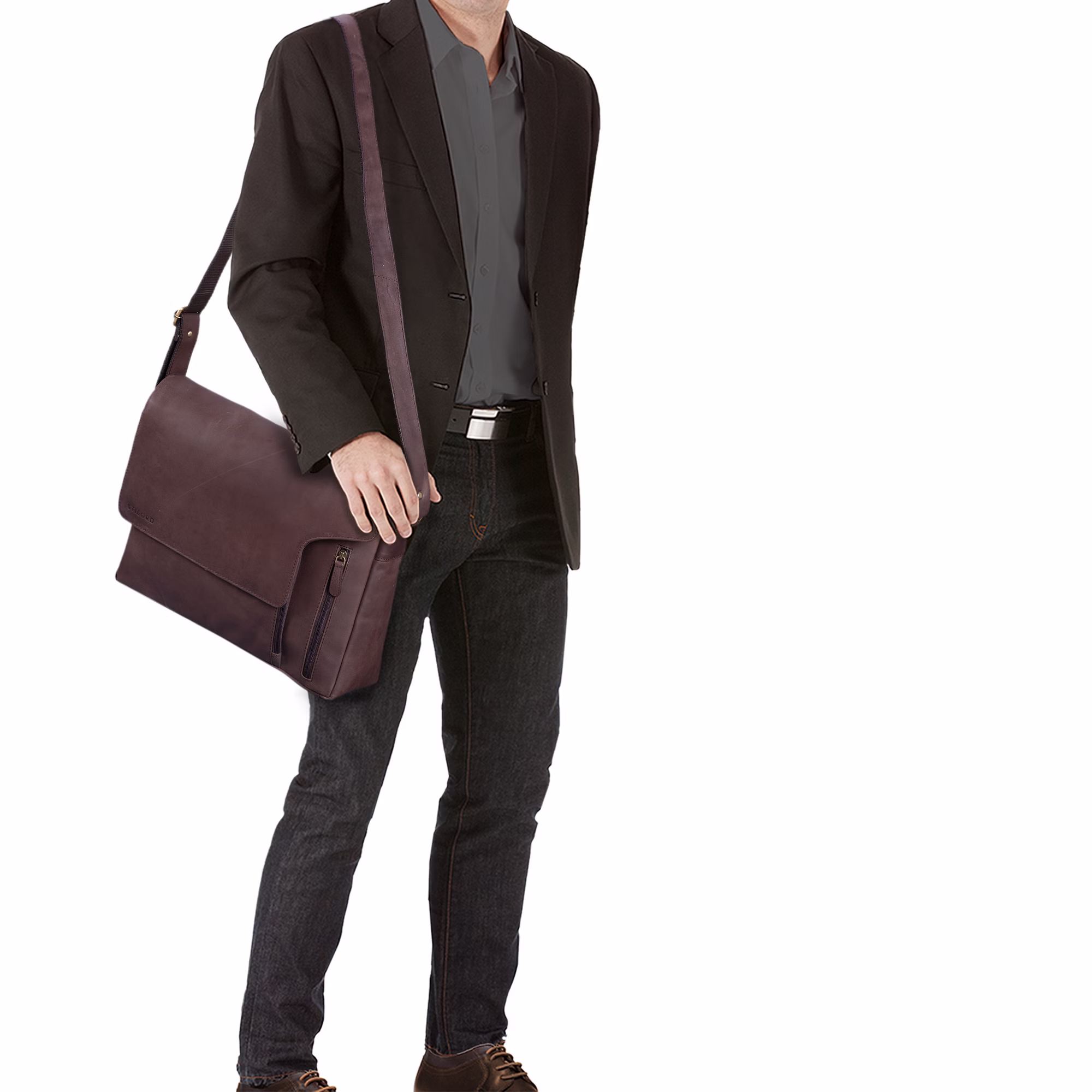 Oprócz wytrzymałej prawdziwej skóry w nowoczesnym stylu vintage, optyczne akcenty, takie jak pionowy zamek błyskawiczny i skośna klapa, nadają torbie dla mężczyzn niepowtarzalny i stylowy wygląd.