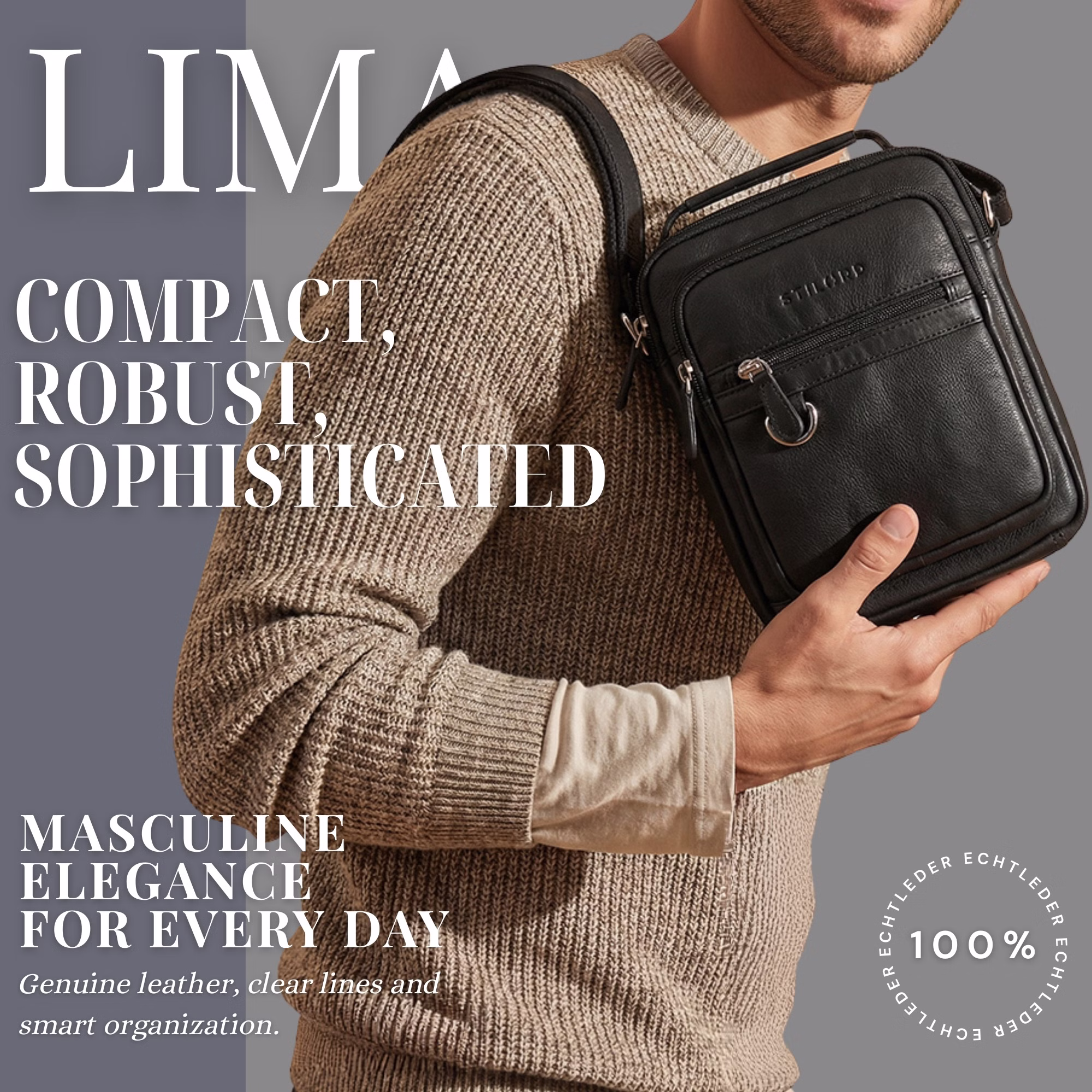 - PONADCZASOWA. KOMPAKTOWA. LIMA: Męska torba na ramię z naturalnej skóry wyróżnia się jako skórzana torba na ramię dla mężczyzn dzięki kompaktowemu formatowi i solidnemu designowi vintage. W czasie wolnym, w podróży czy w mieście ta skórzana torba męska na ramię towarzyszy stylowo i niezawodnie.