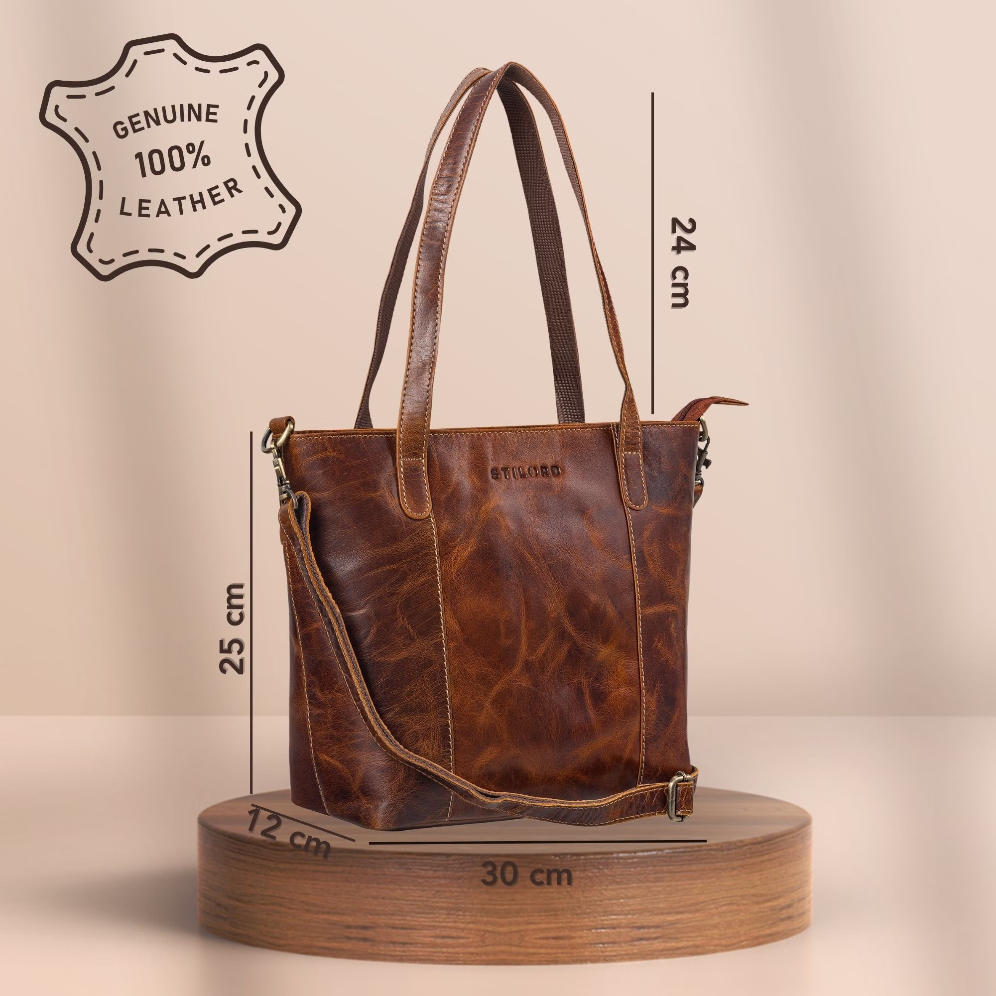 - ELEGANCKA TOREBKA DAMSKA: Damska torebka skórzana z prawdziwej skóry vintage (30 x 12 x 25 cm, 640 g) oferuje sprytne przegródki oraz odpinany pasek na ramię. Jako elegancki shopper skórzany jest idealną torebką na zamek – stylową i zorganizowaną na co dzień.