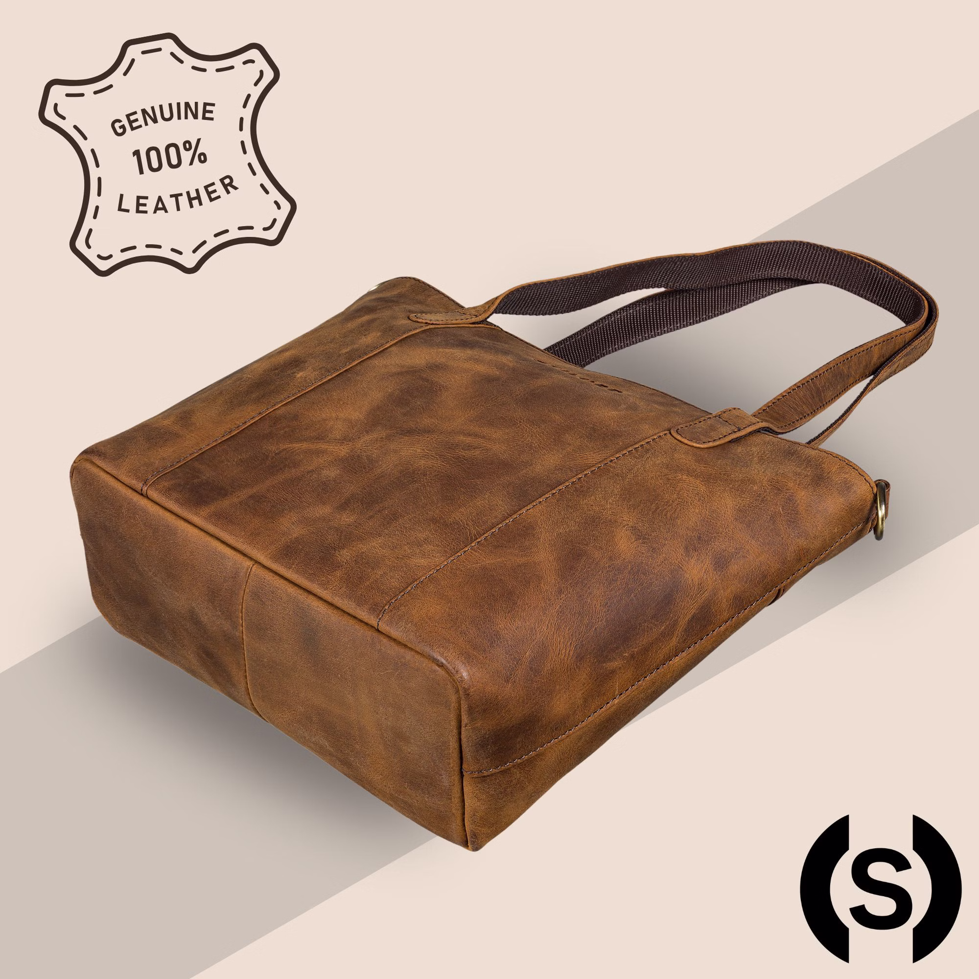 - ELEGANCKA TOREBKA DAMSKA: Damska torebka skórzana z prawdziwej skóry vintage (30 x 12 x 25 cm, 640 g) oferuje sprytne przegródki oraz odpinany pasek na ramię. Jako elegancki shopper skórzany jest idealną torebką na zamek – stylową i zorganizowaną na co dzień.