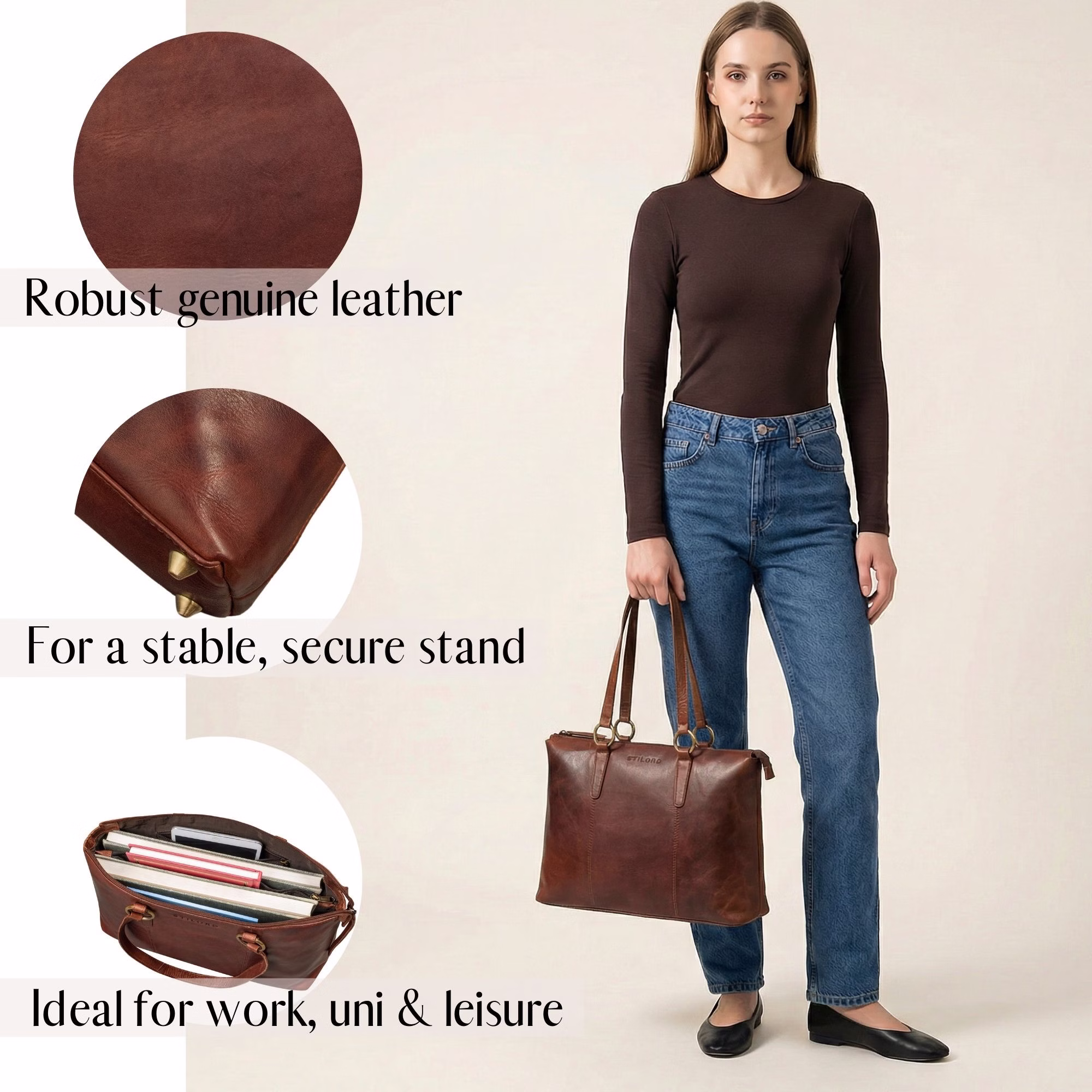 - Kompatybilność i pojemność: Torba skórzana duża zmieści laptop do 16 cali (24x36 cm) oraz inne codzienne akcesoria, idealny dla aktywnych kobiet.